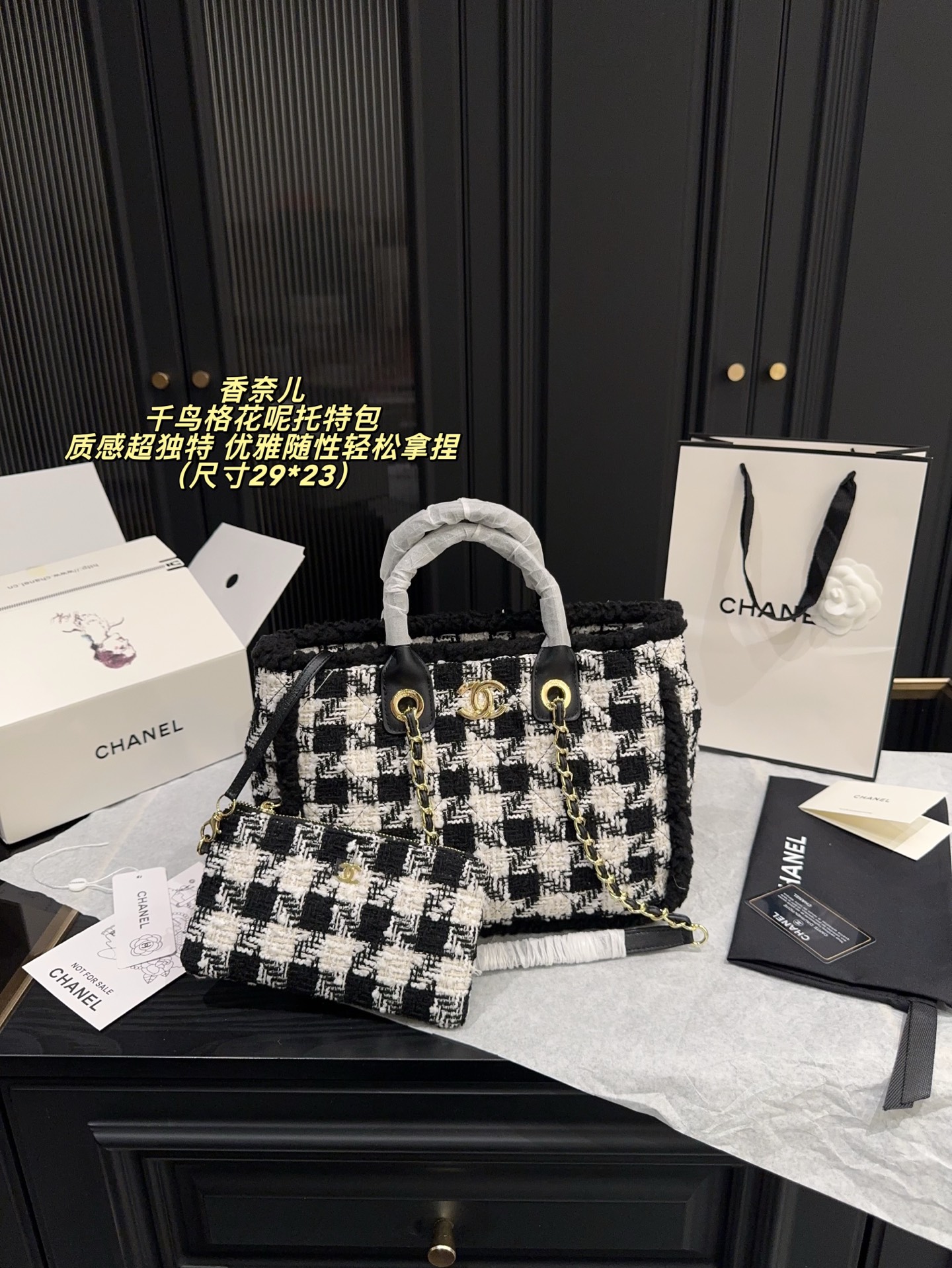 香奈儿 Chanel 千鸟格花呢托特包