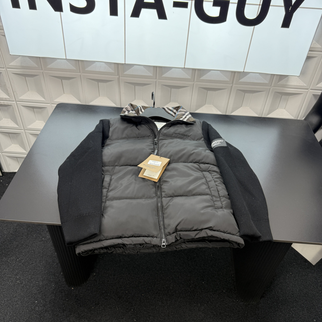 冬季热销爆款网红博主推荐款巴宝莉翻领羽绒棉服 拼接针织袖 钢 413704