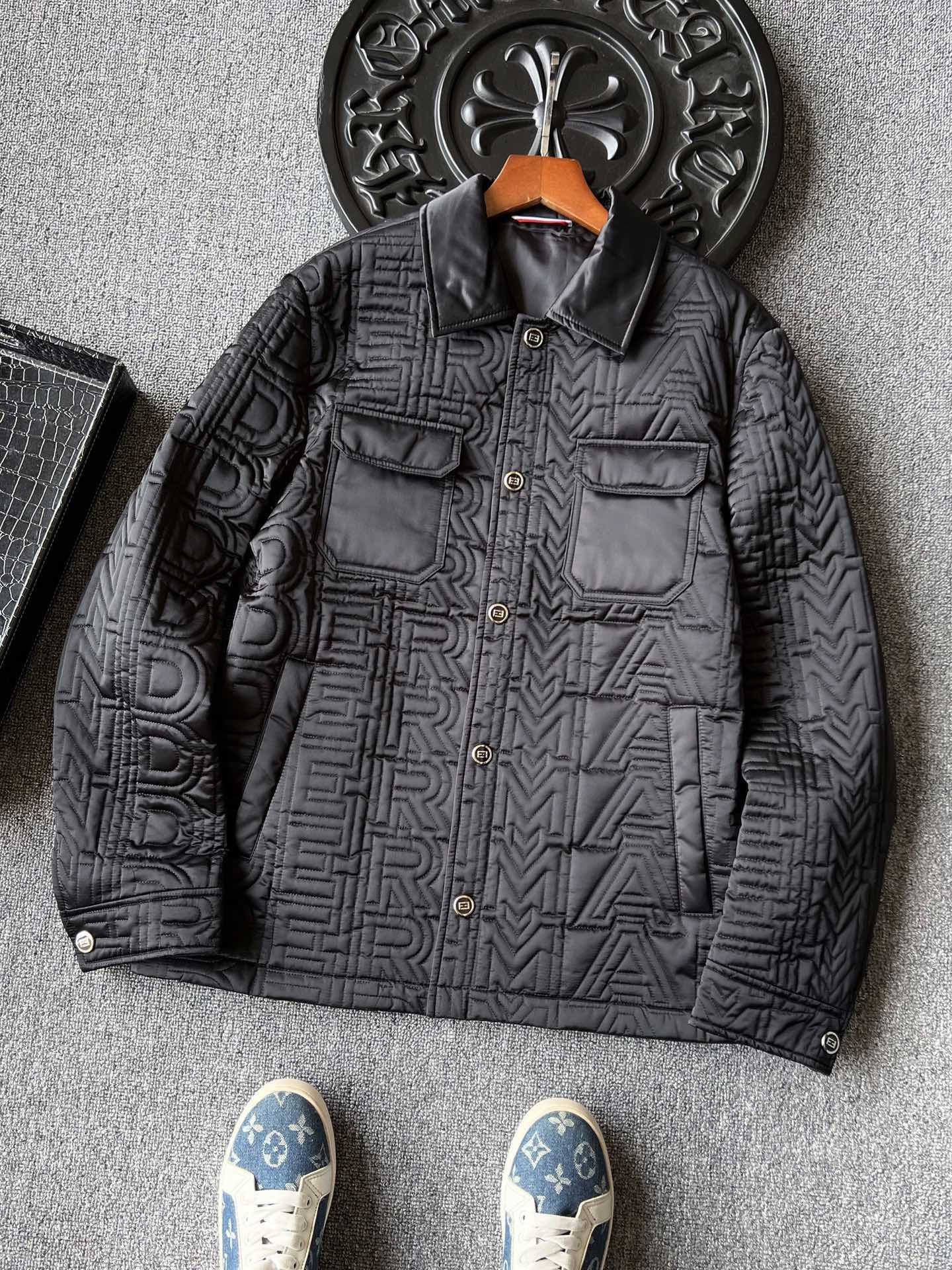 秋冬爆款热销款推荐Lv路易威登连帽棉服 满印老花字母暗纹拼接 401945