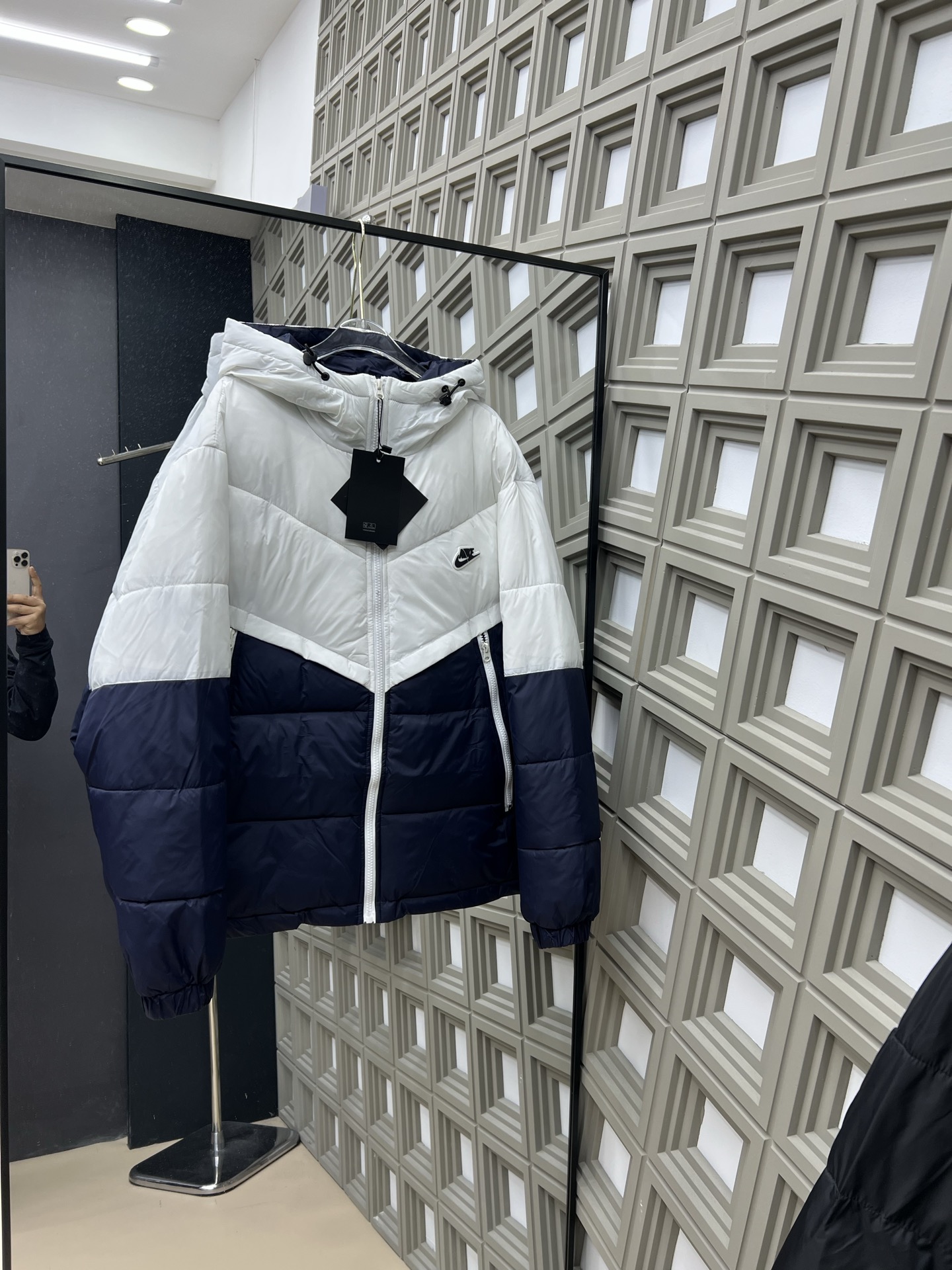 耐克冬季男女同款情侣款男士拼色拼接保暖个性时尚塔丝绒连帽棉服 352378