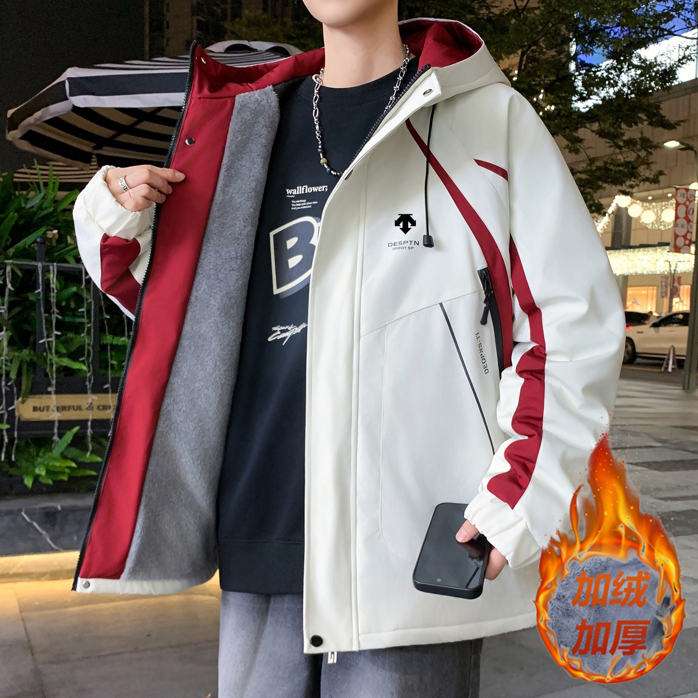 可隆KOLONSPORT摇粒绒连帽logo三合一可拆卸内胆男 351311