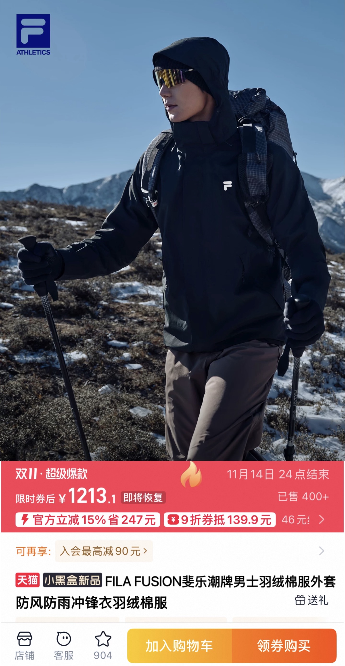 FILA FUSION斐乐潮牌男士加厚羽绒棉服2025 351054