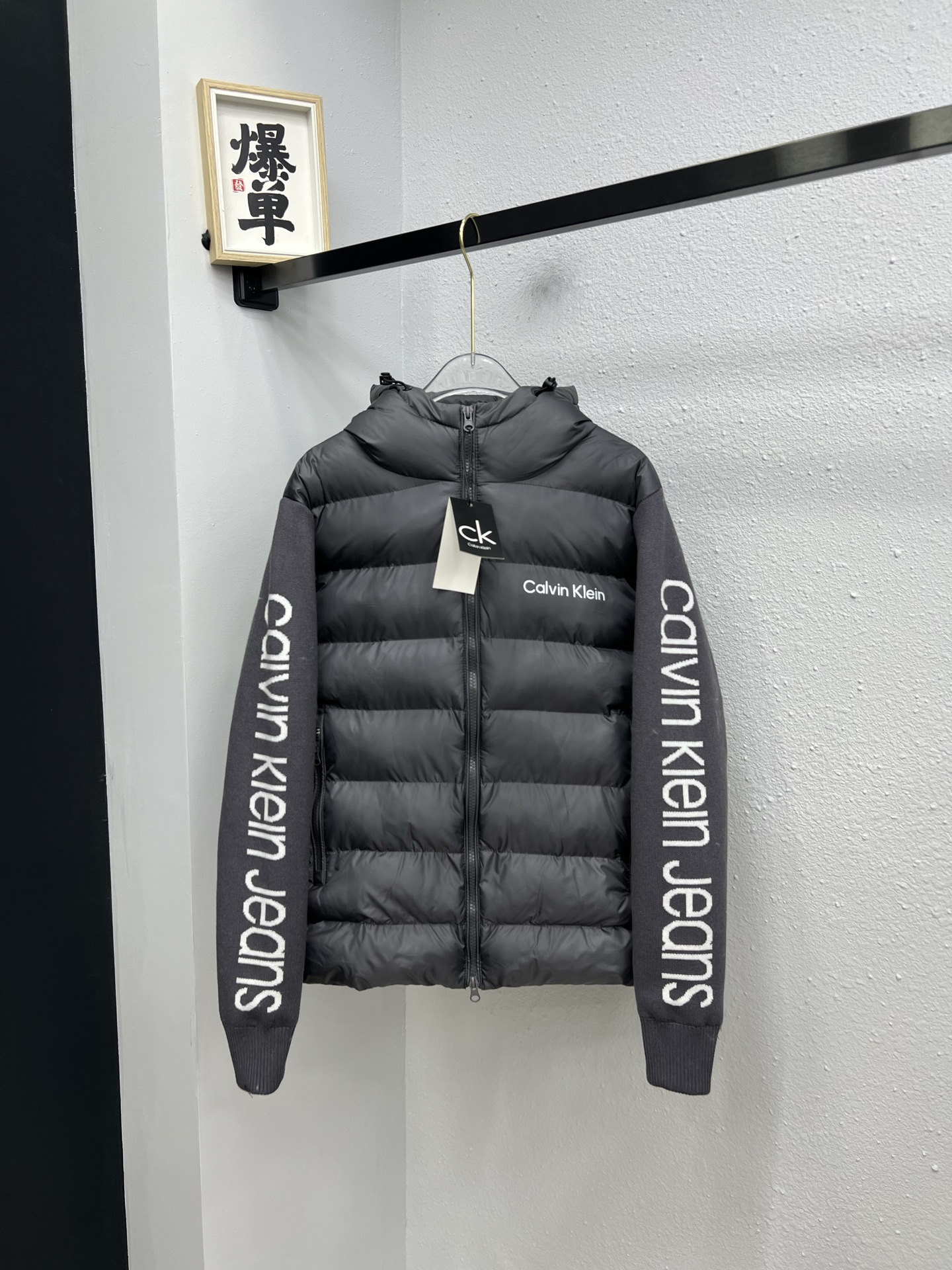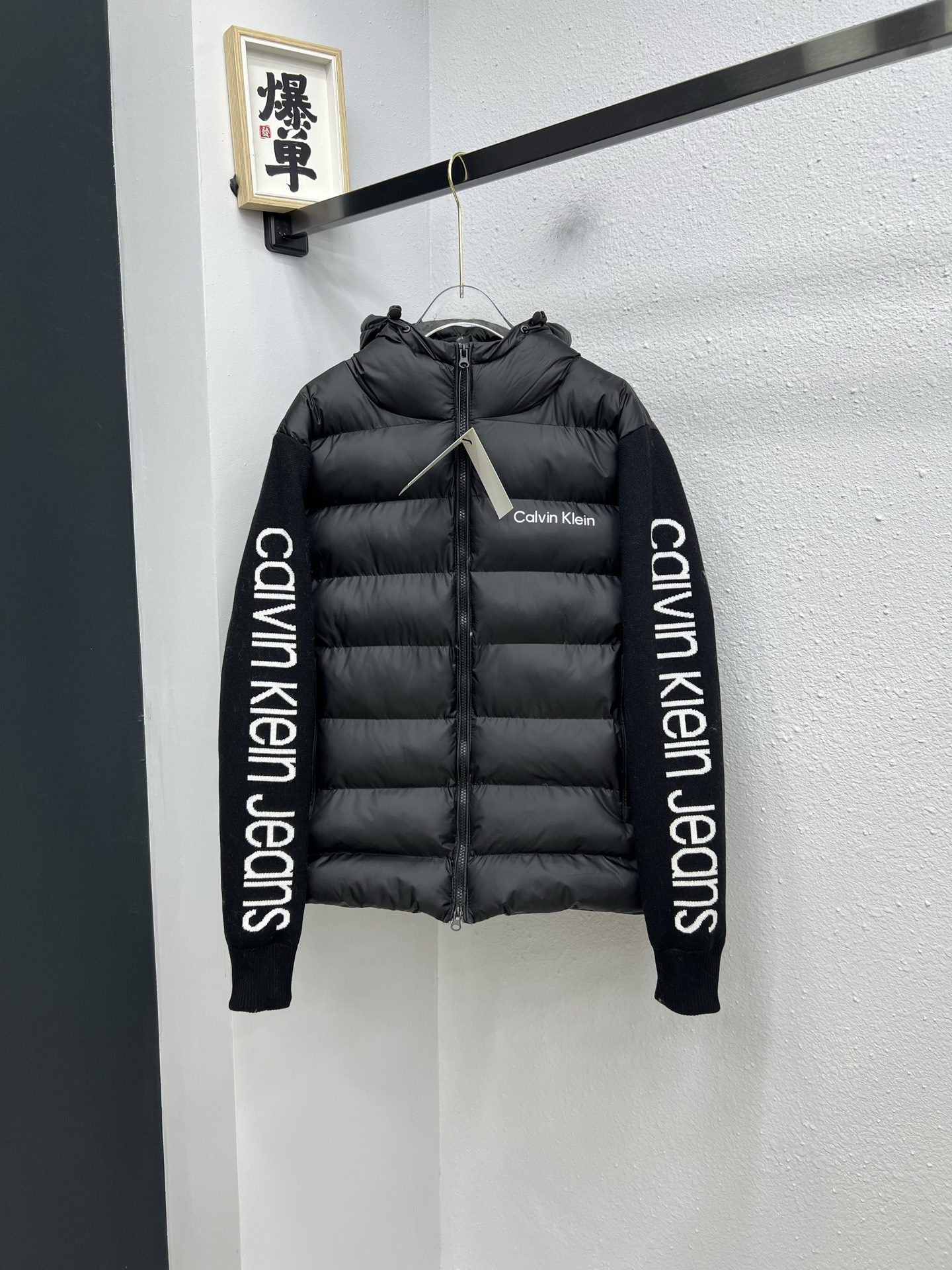 CK连帽针织袖拼接棉服L 4XL 黑色 384976