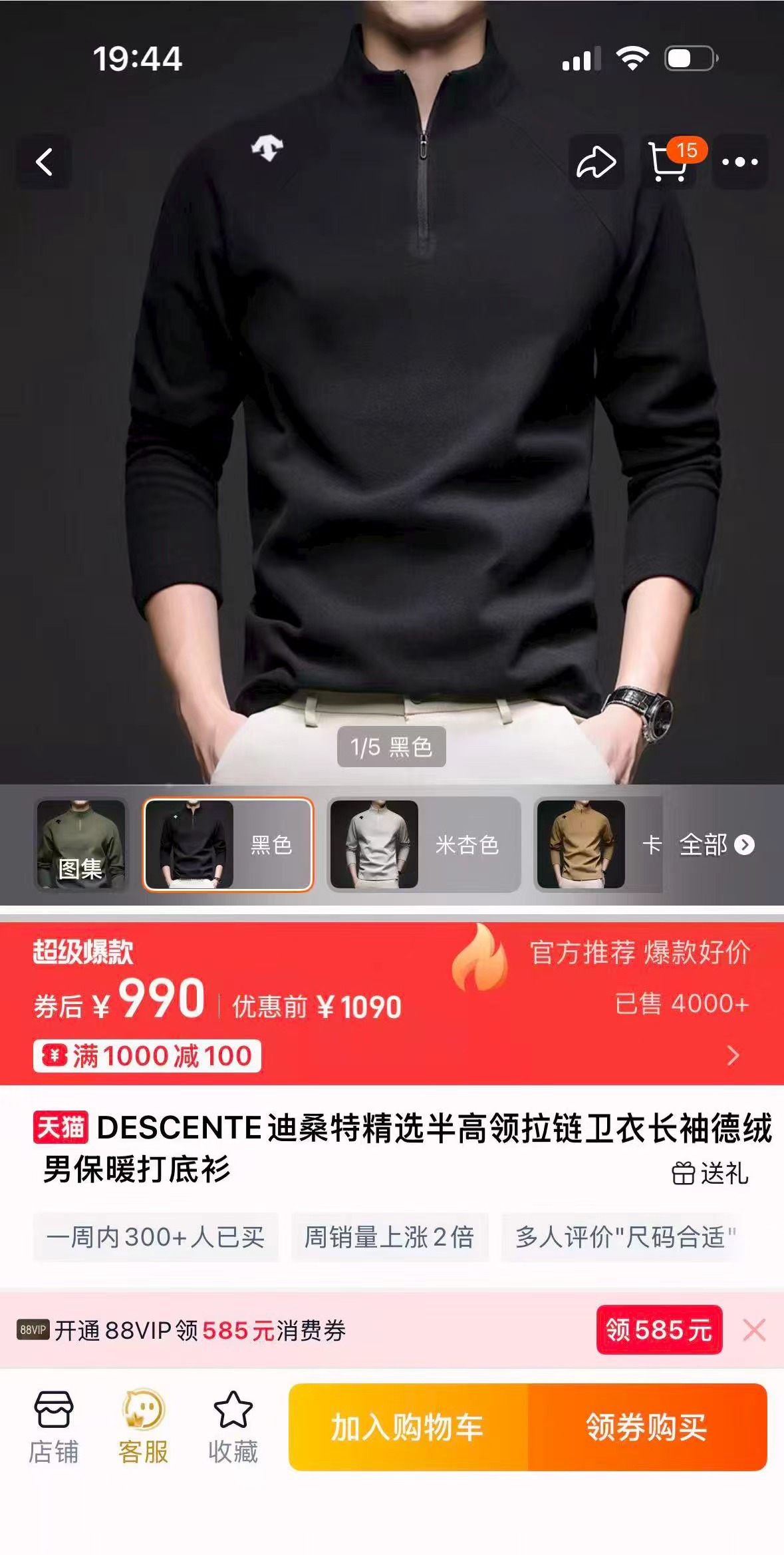 迪家冬季加绒半高领运动 419819