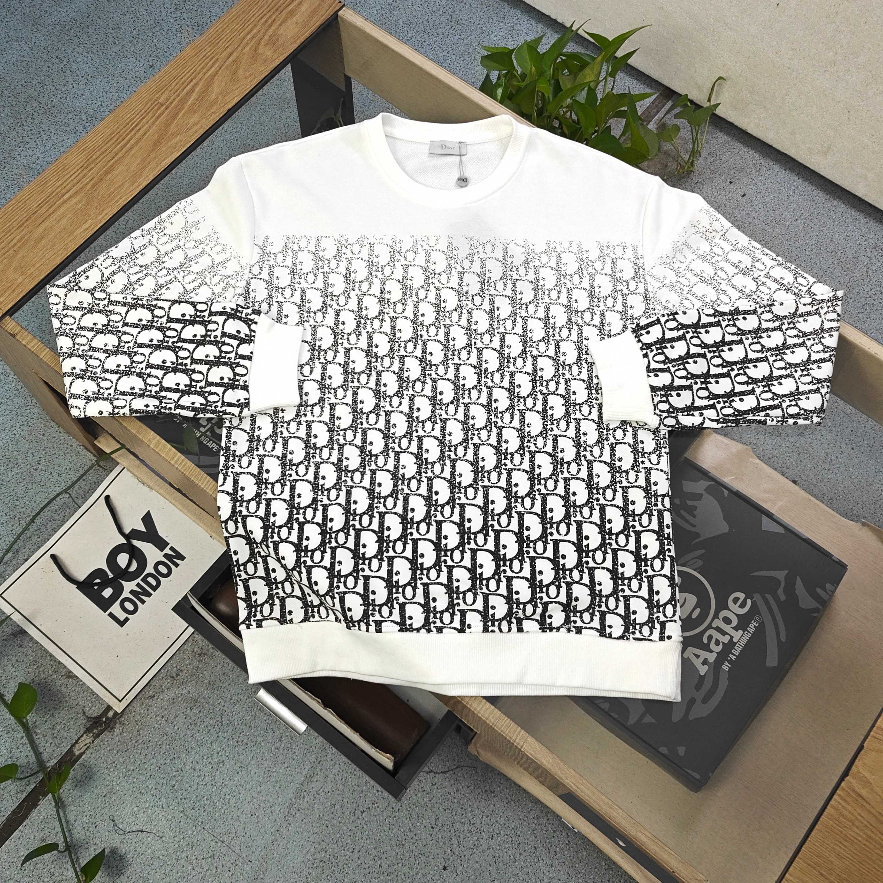 Dior迪奥25ss新款Oblique 印花条形针织长袖拼接 396939