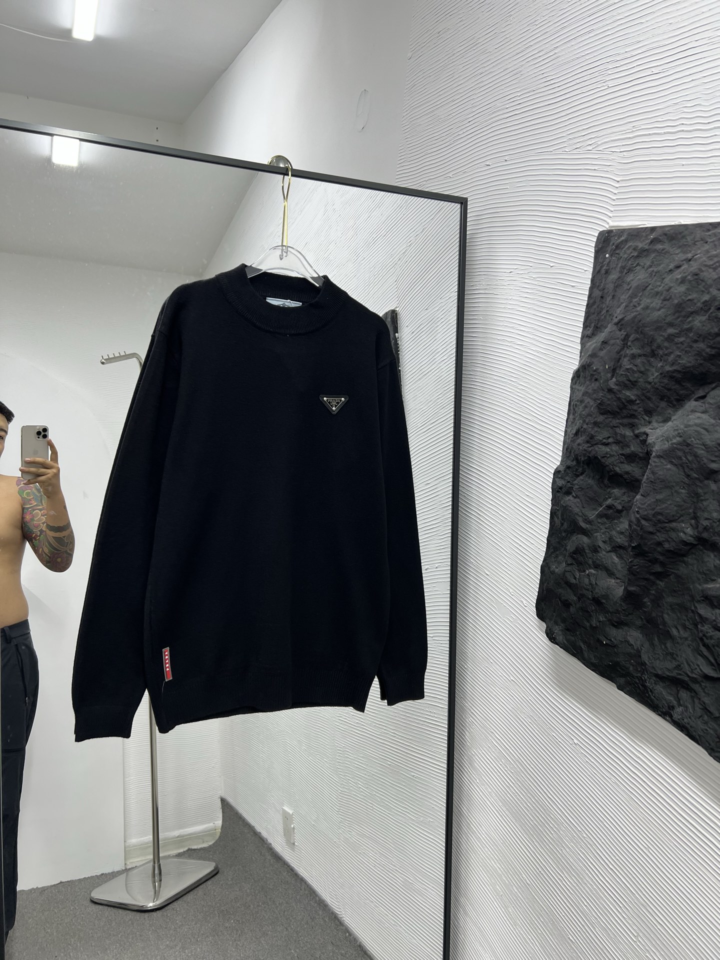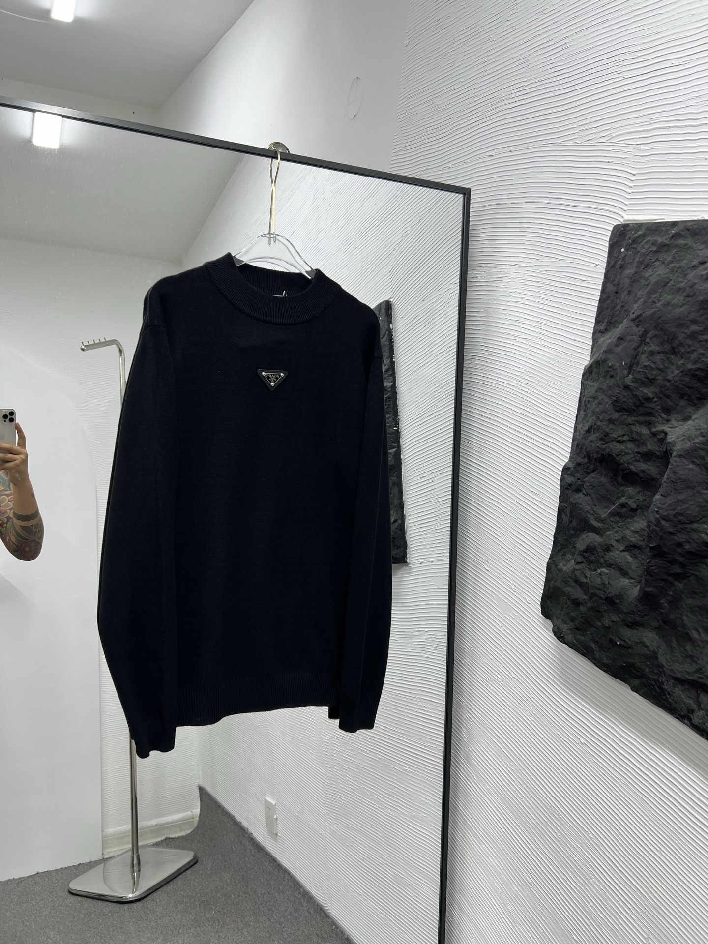 普拉达刺绣字母绳绣针织圆领卫衣