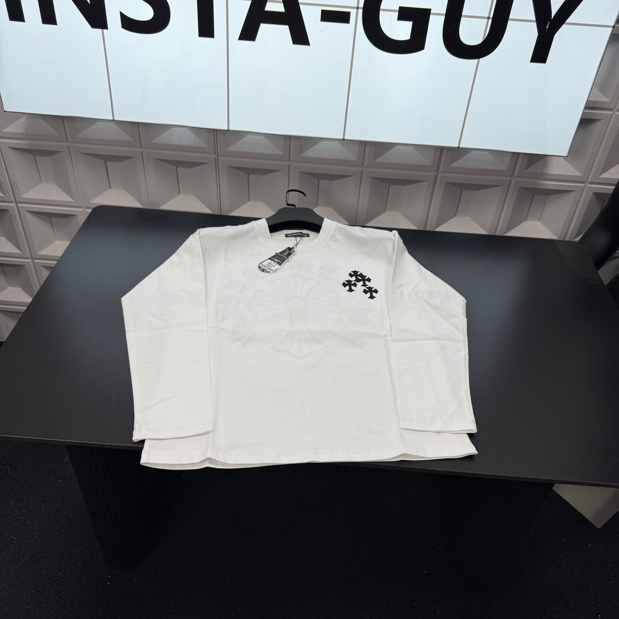 此款售后不停 秋季热销款推荐克罗心项链小字母手臂满印T恤长袖 440140