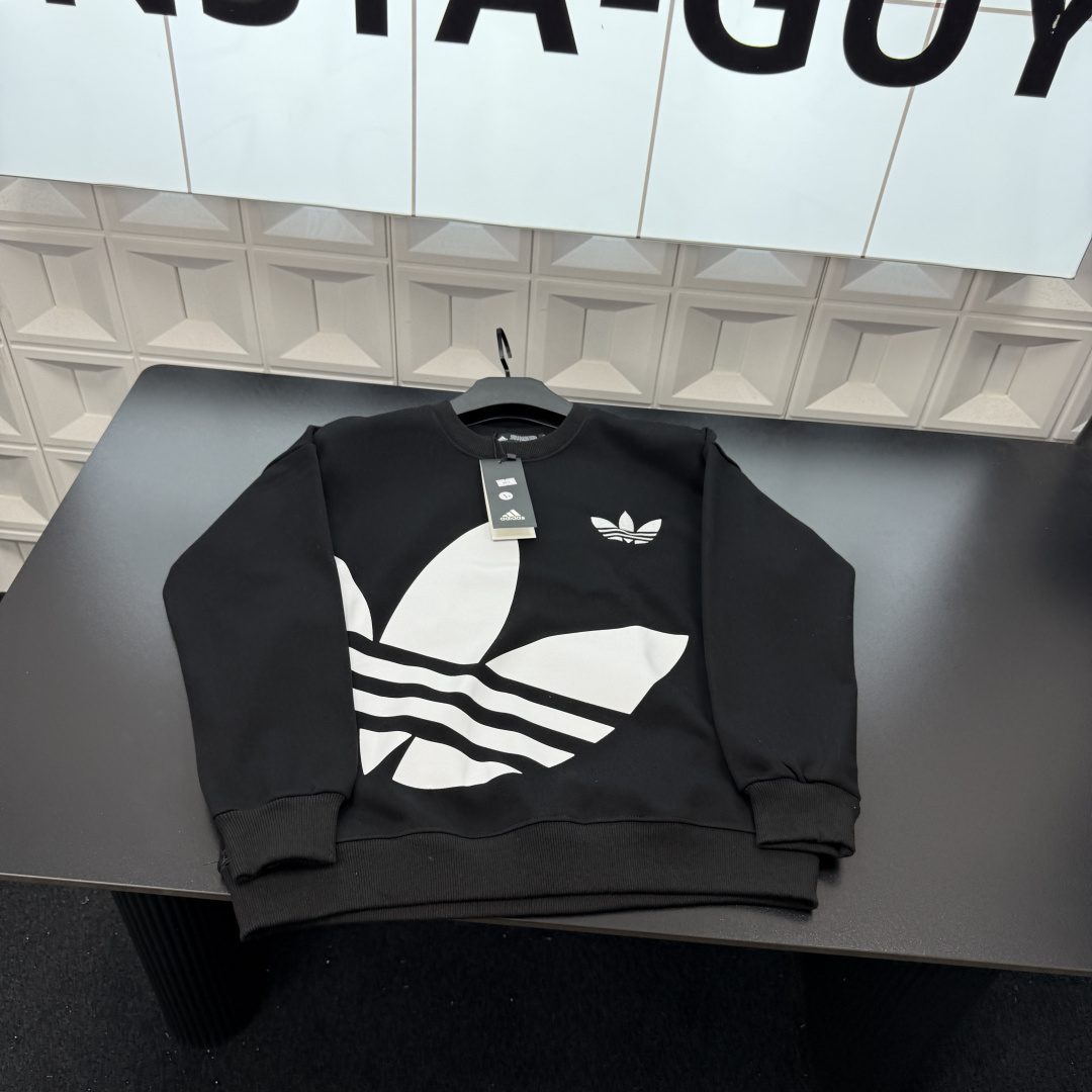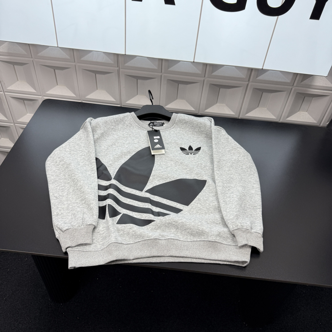 冬季热销爆款网红博主推荐款AD阿迪达斯加绒圆领卫衣 胸前三叶 398267