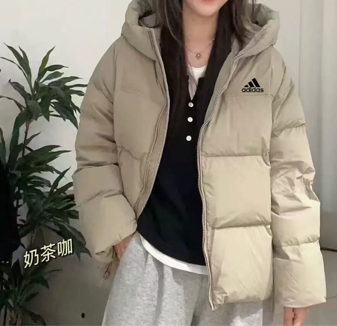 售后不停 90白鸭绒奶茶咖色美式阿迪达斯Adidas连帽羽绒 448337