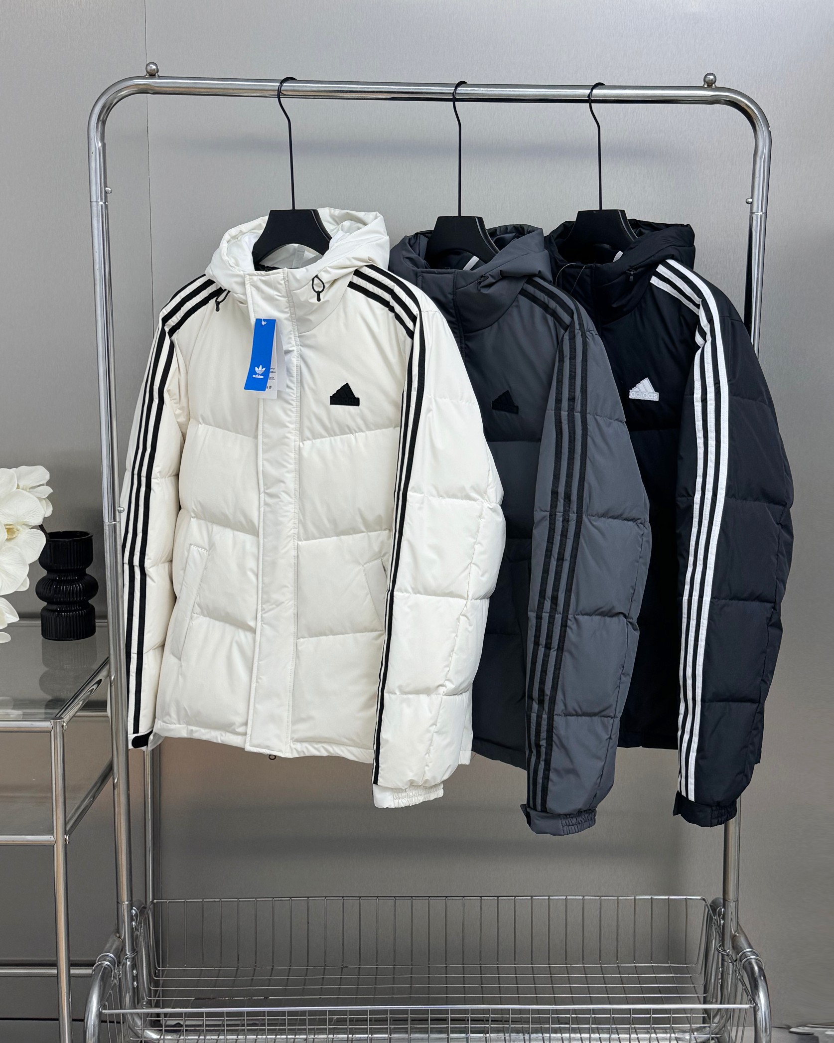 adidas 阿迪达斯三条杠专柜款白鸭绒立领羽绒服 官网同步 349945