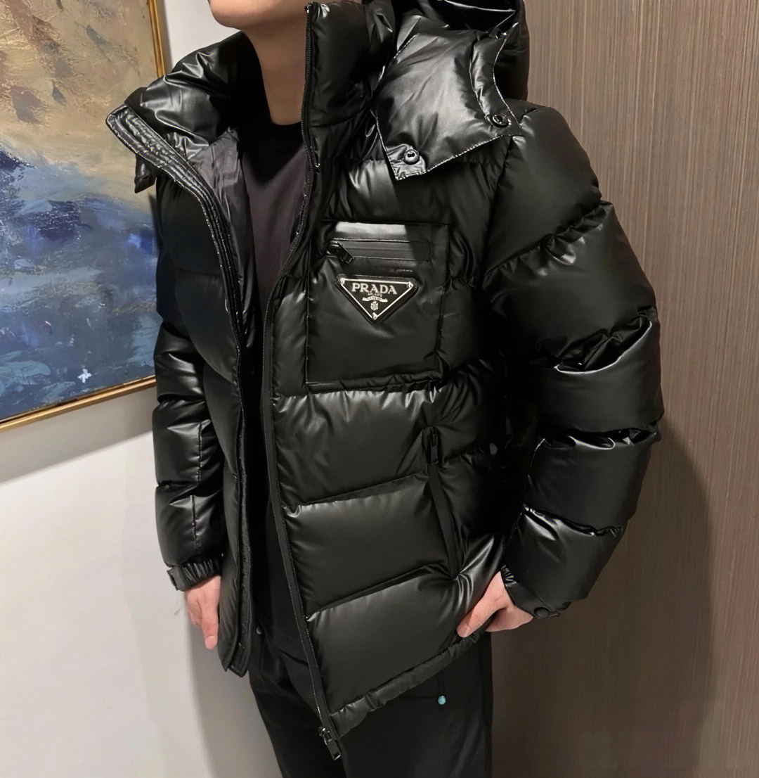原版压胶高端版 普拉达PRADA 24FW压胶三角铁牌压胶羽 350969