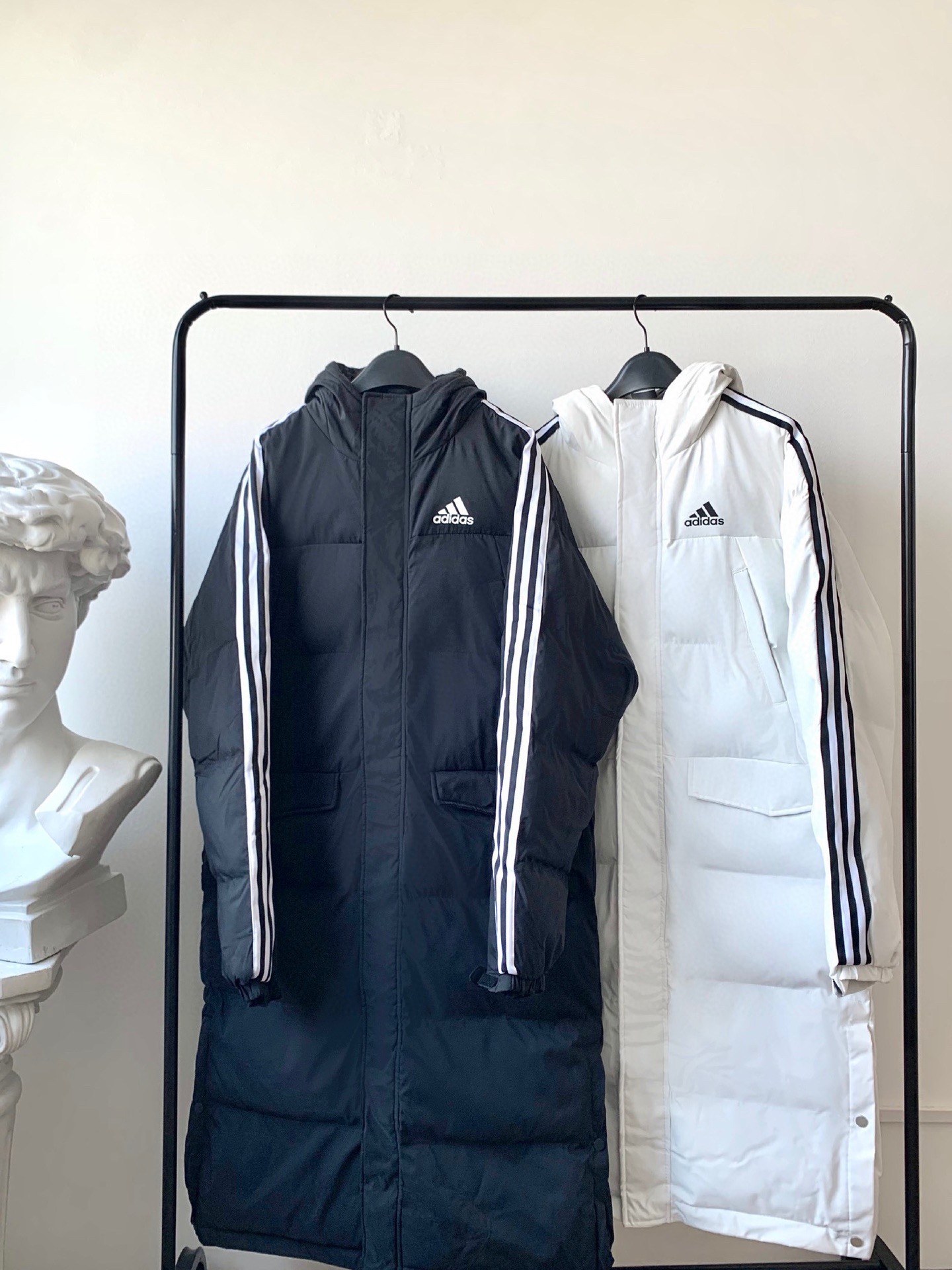 AD连帽三杠羽绒长款棉服