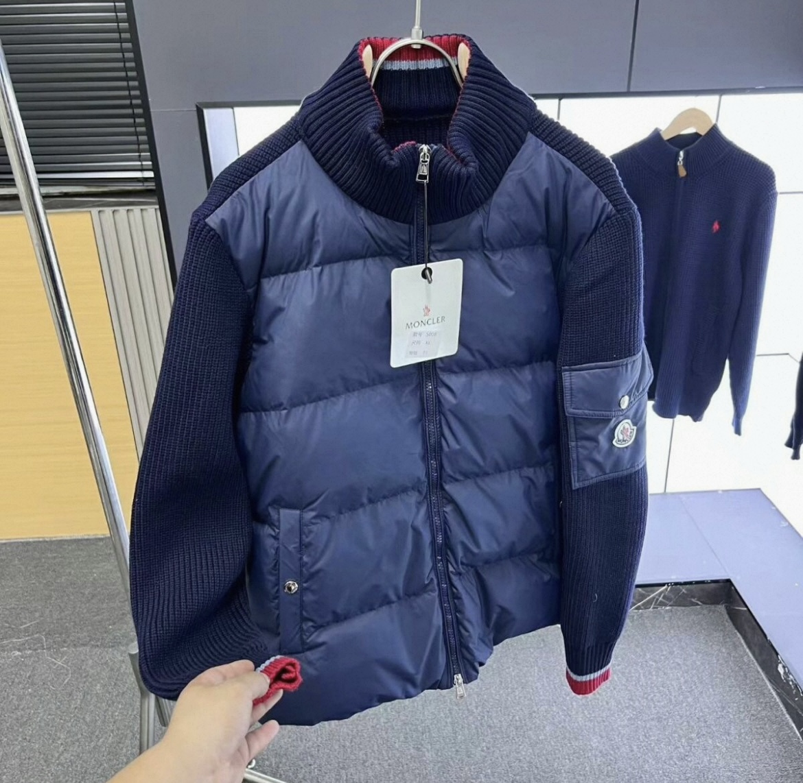 蒙口拼接针织衫羽绒服外套