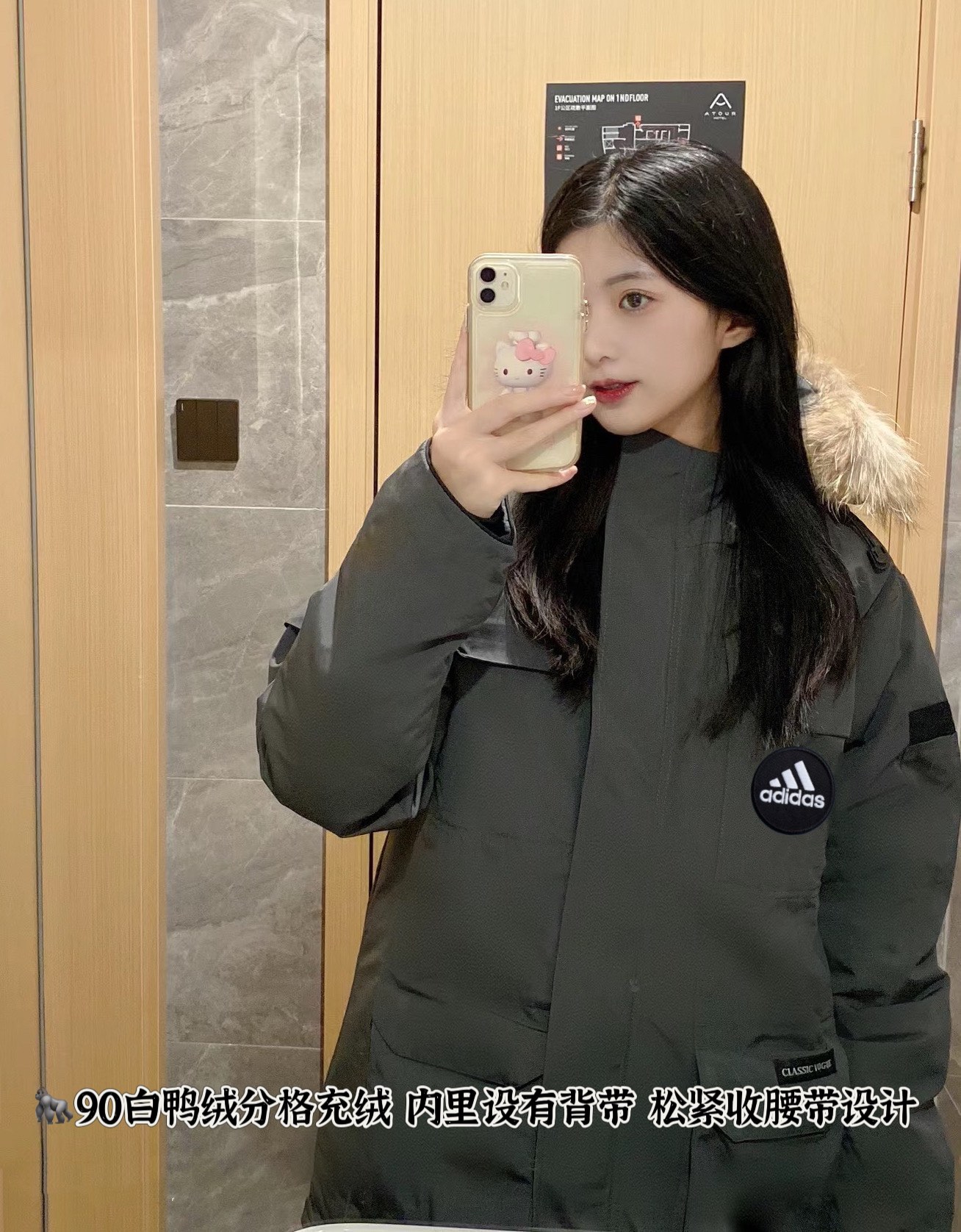 高版本 大朵绒90白鸭绒阿迪达斯Adidas长款羽绒服