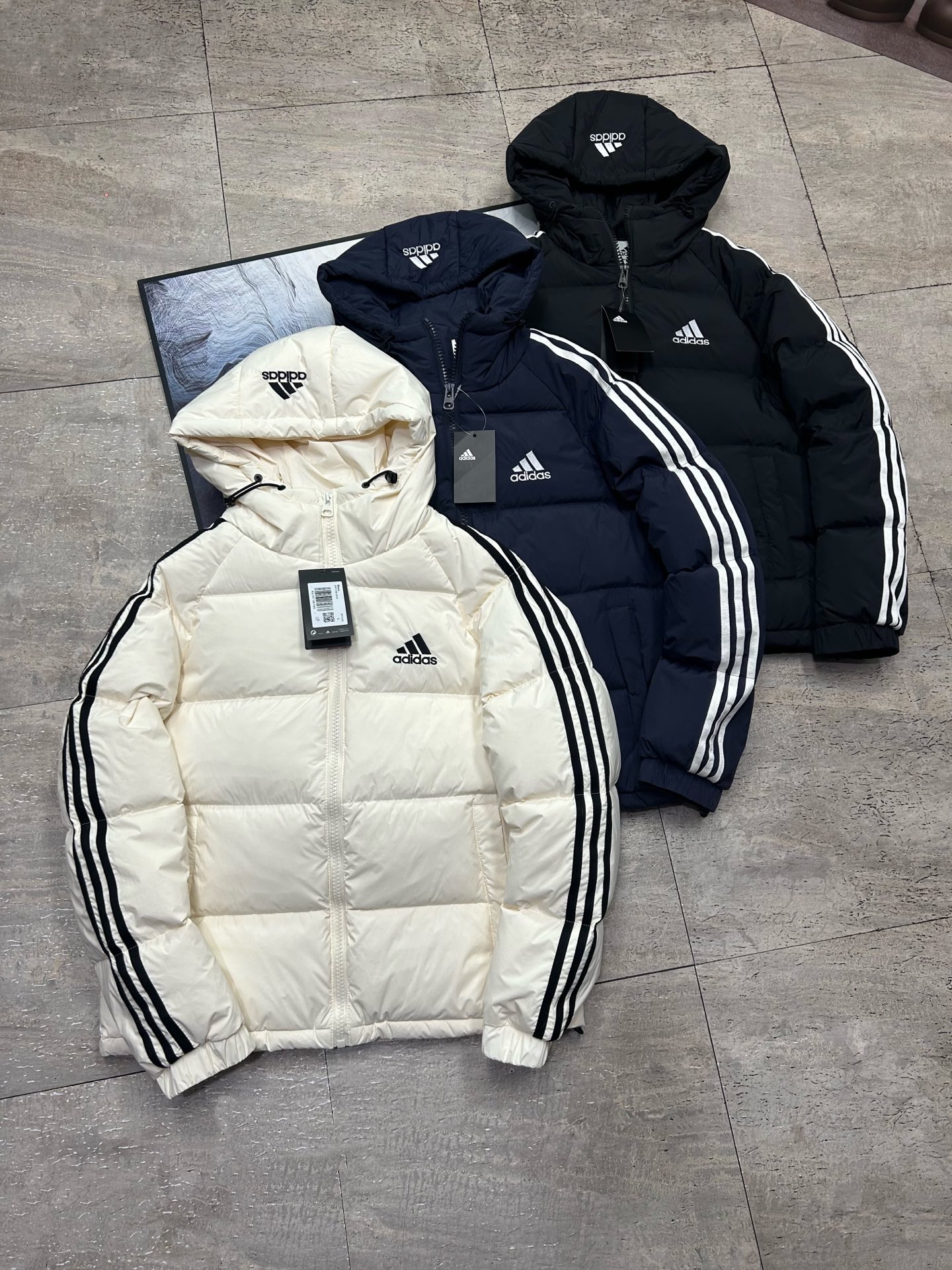 官网同步Adidas阿迪达斯三道杠基础款情侣羽绒服 精品刺绣 431755