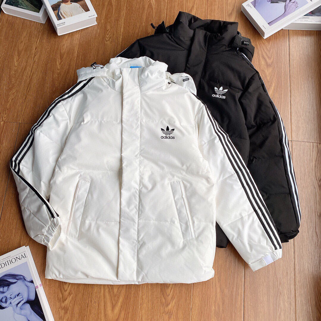 Adidas阿迪达斯三叶草专柜小logo印花三杠连帽加厚羽绒 420484