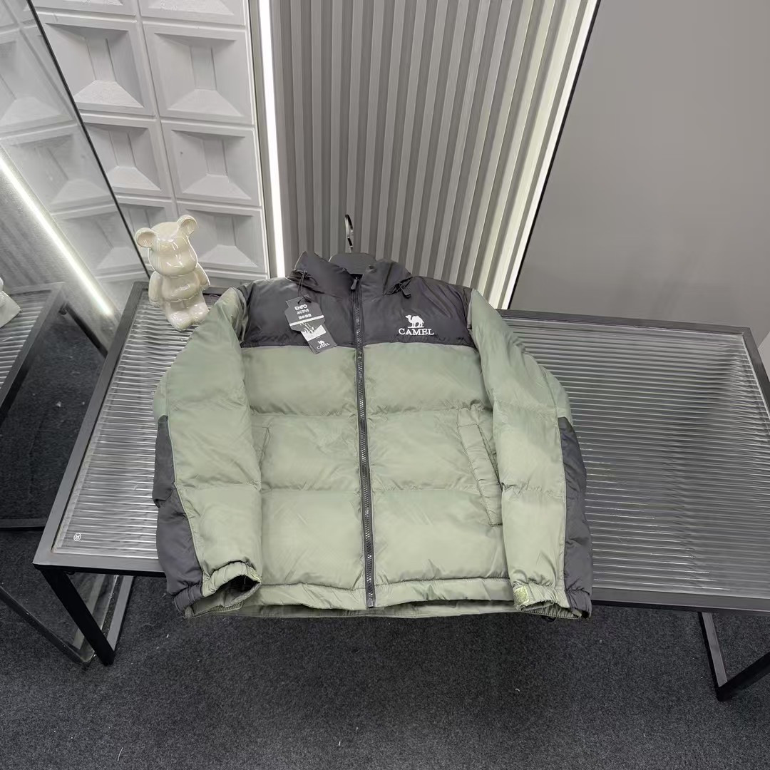 秋冬爆款热销款推荐骆驼立领羽绒服 拼接撞色 胸前刺绣图案 三 420748