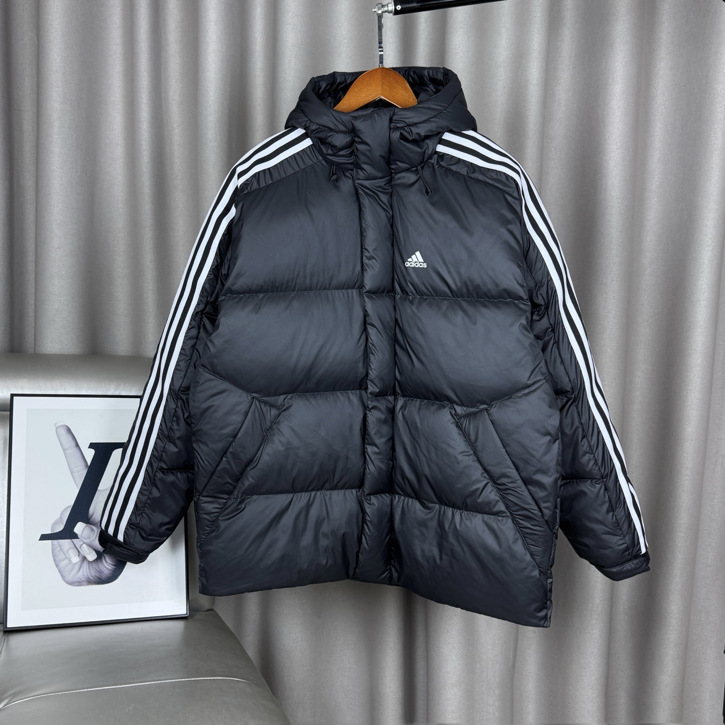 秋冬爆款热销推荐款大鹅连帽羽绒服 80绒手臂刺绣黑标 轻薄款 404323