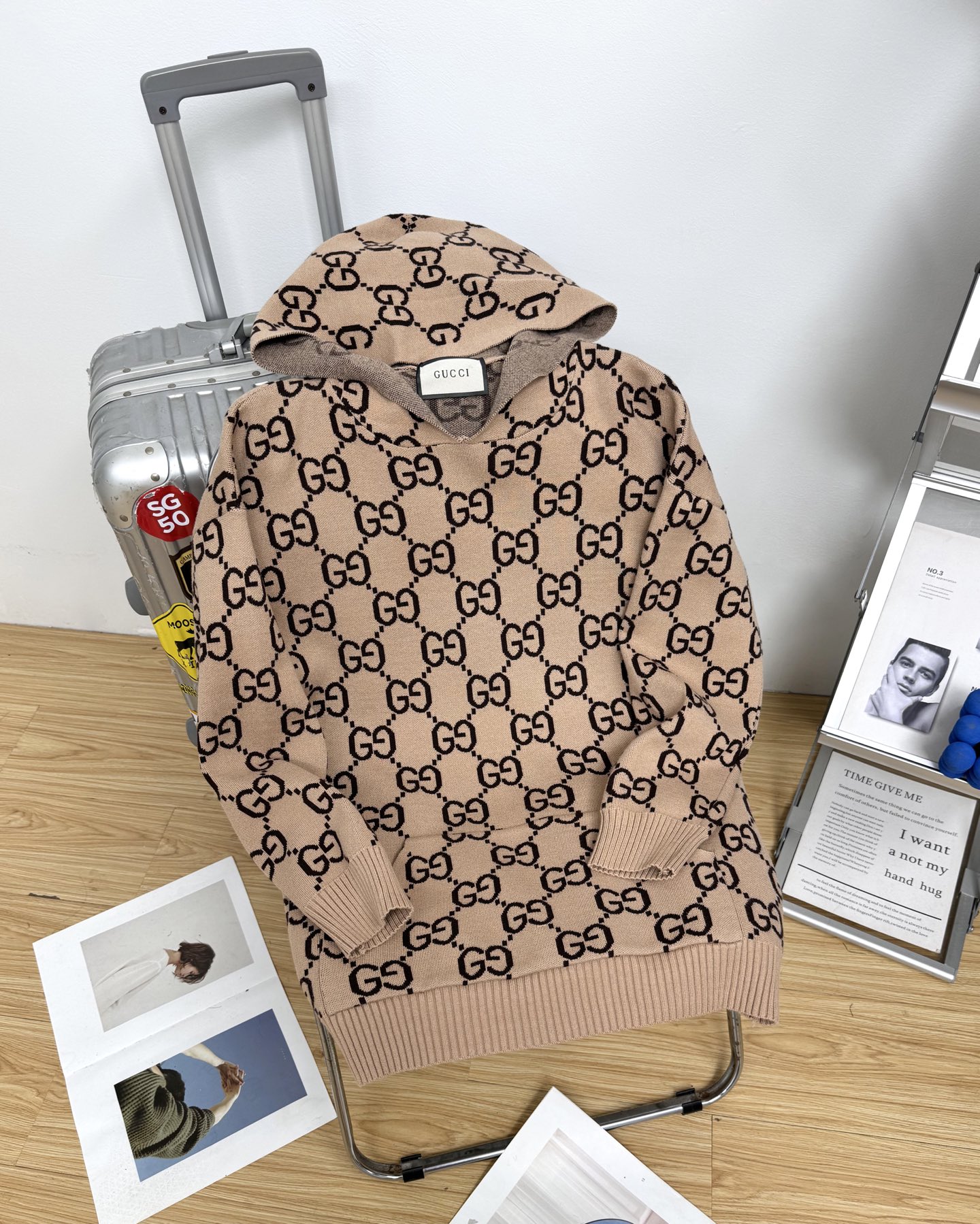 古驰 Gucci24ss双G满印提花连帽针织毛衣 男女同款