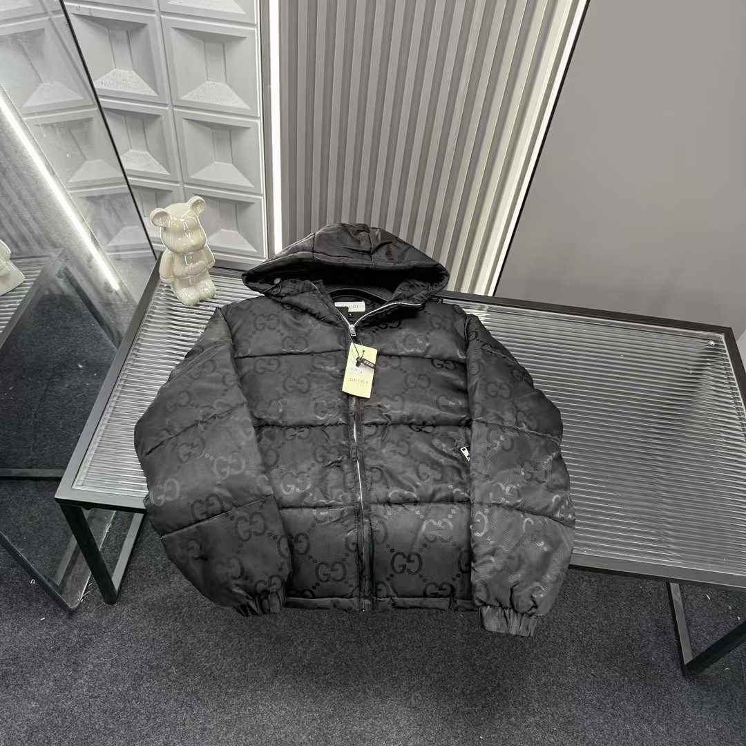 秋冬爆款热销款推荐Gucci古驰连帽棉服 满印提花暗纹双G图 413630