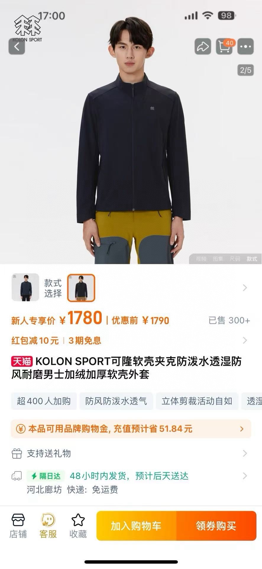 加绒款 KOLON SPORT 可隆两色软壳加绒立领户 326835