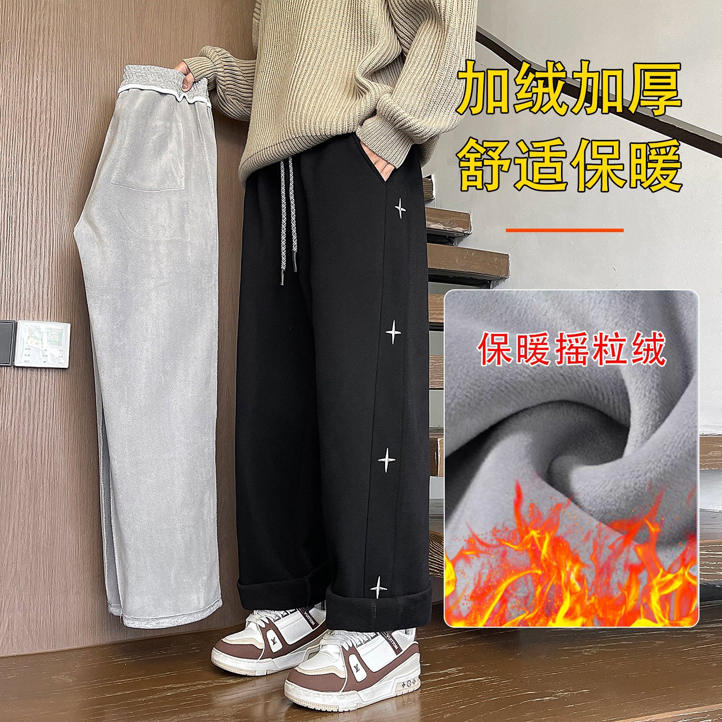 LOUIS VUITTON LV路易威登绣标银狐绒直筒卫裤 416042