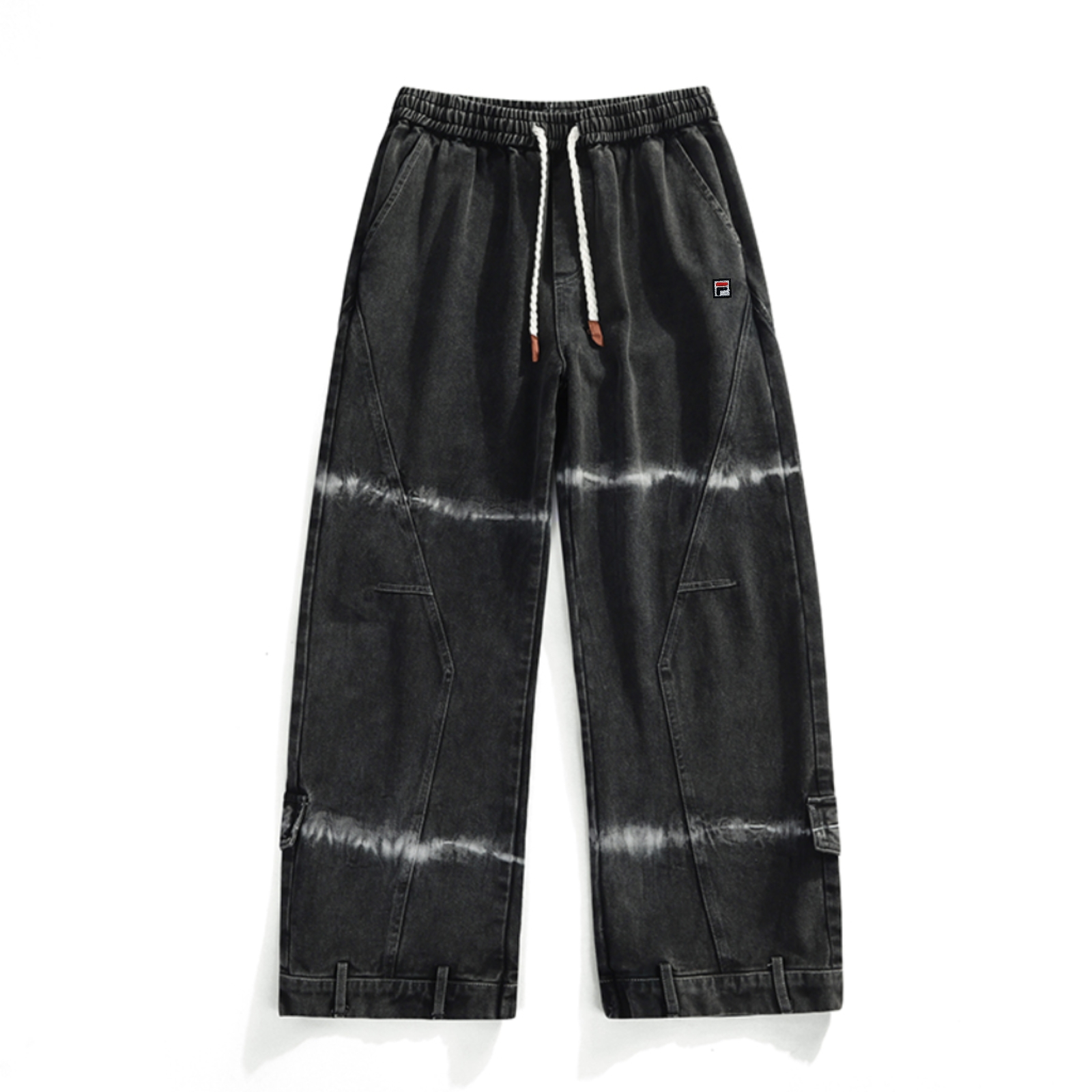 斐乐FILA 秋季款宽松直筒成衣扎染休闲牛仔裤