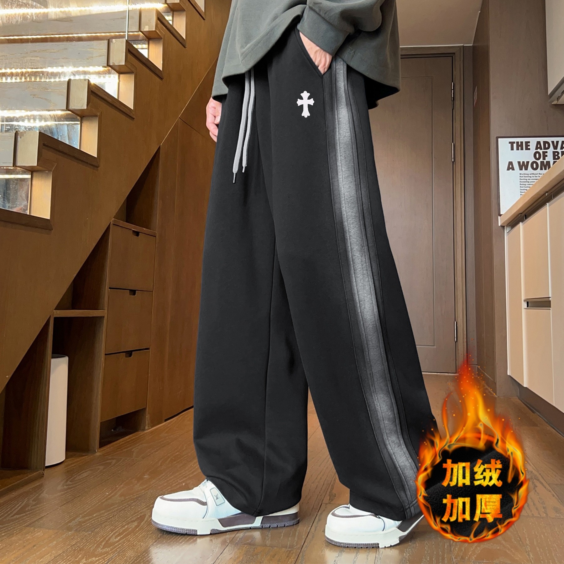 万斯Vans冬季新款 男女同款加绒加厚摇粒绒保暖休闲卫裤 男 416224
