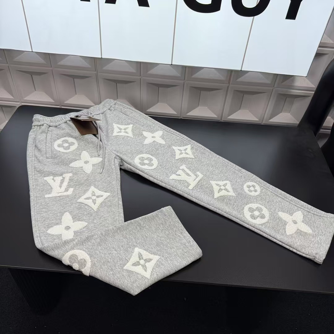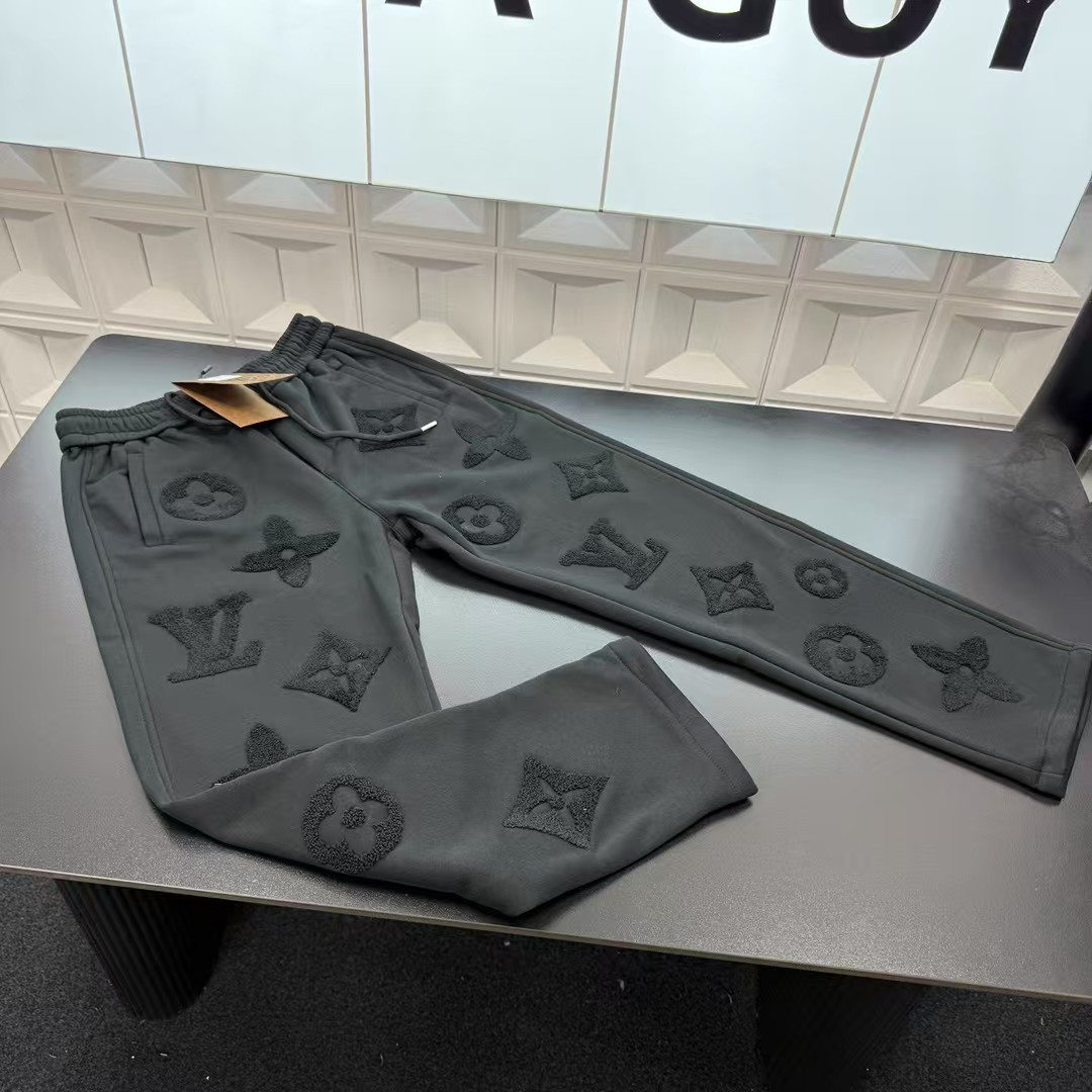 秋冬爆款热销款推荐Lv路易威登加绒直筒裤 满印图案火烧毛巾绣 416916