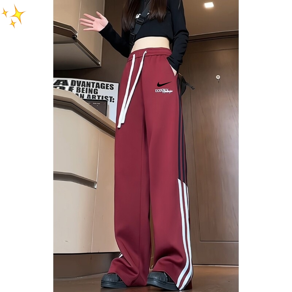 耐克 NIKE三条杠字母刺绣直筒裤安哥拉红拖地裤卫裤海外专柜 403088