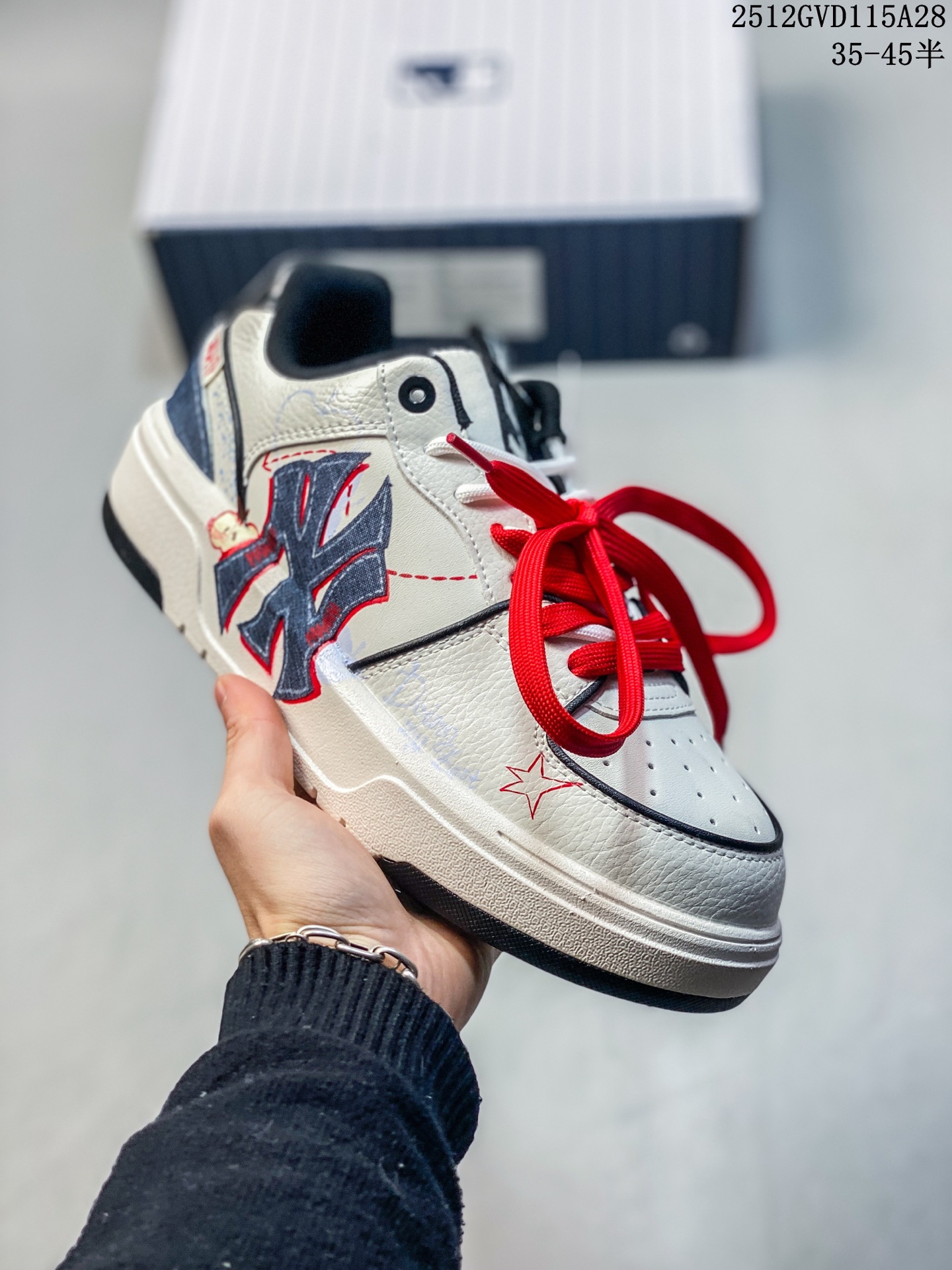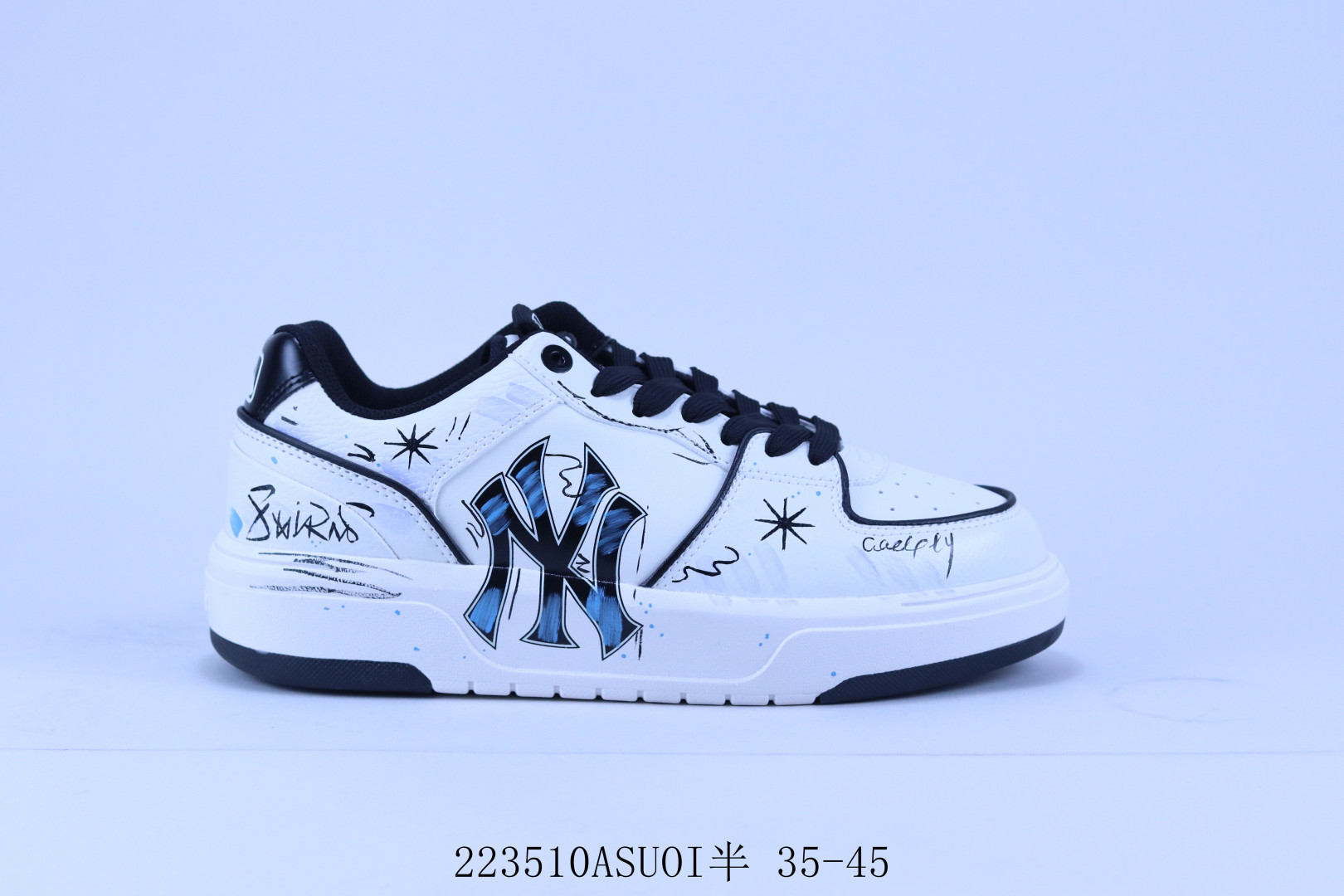 公司级MLB NY 印花网红老爹鞋板鞋 涂鸦恶作剧DIY