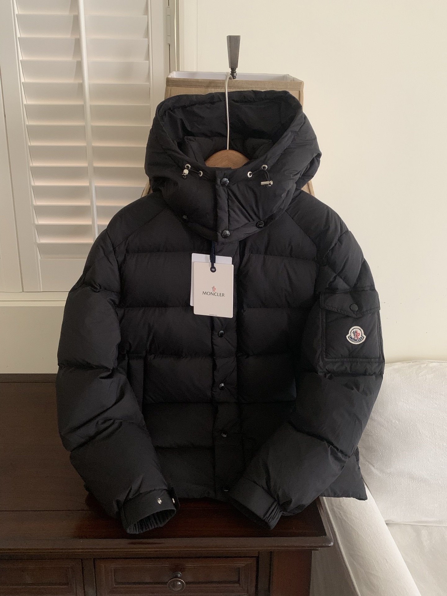 Moncler FW22蒙口黑武士欧洲站徽标刺绣连帽羽绒服 327246