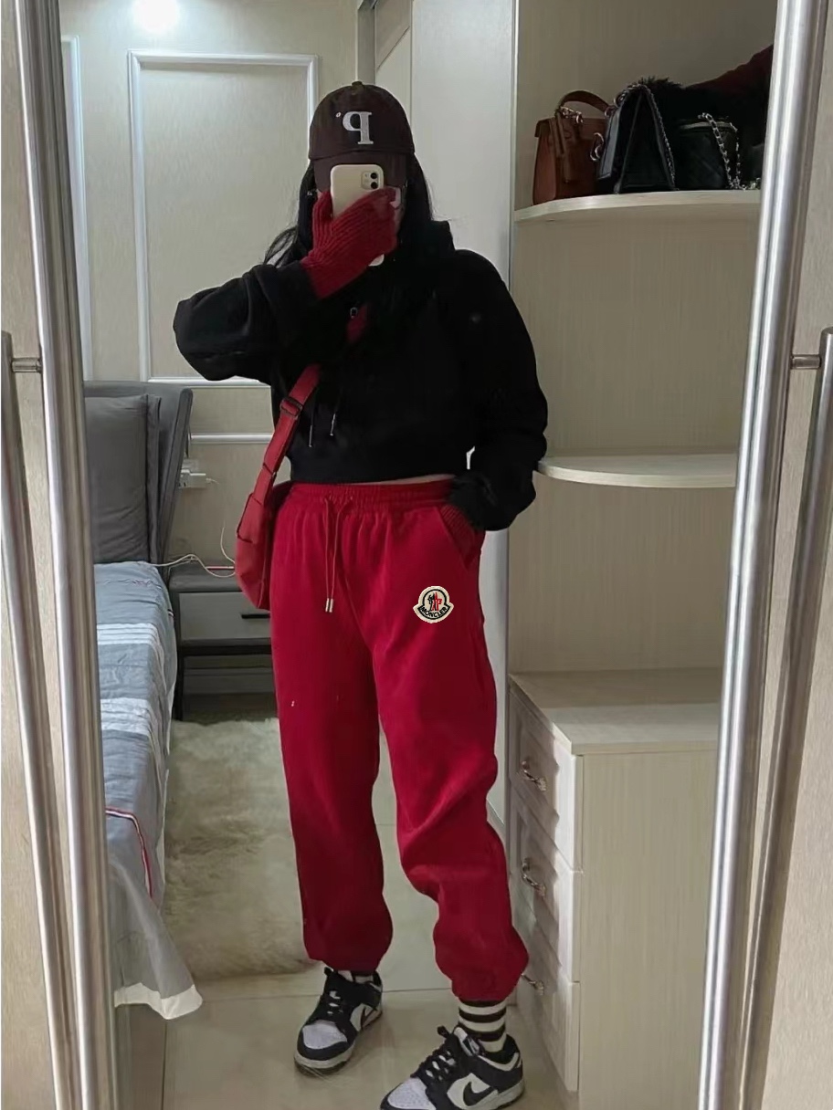 𝗠𝗼𝗻𝗰𝗹𝗲𝗿蒙口25SS限定本命红色加绒束腿休闲卫裤