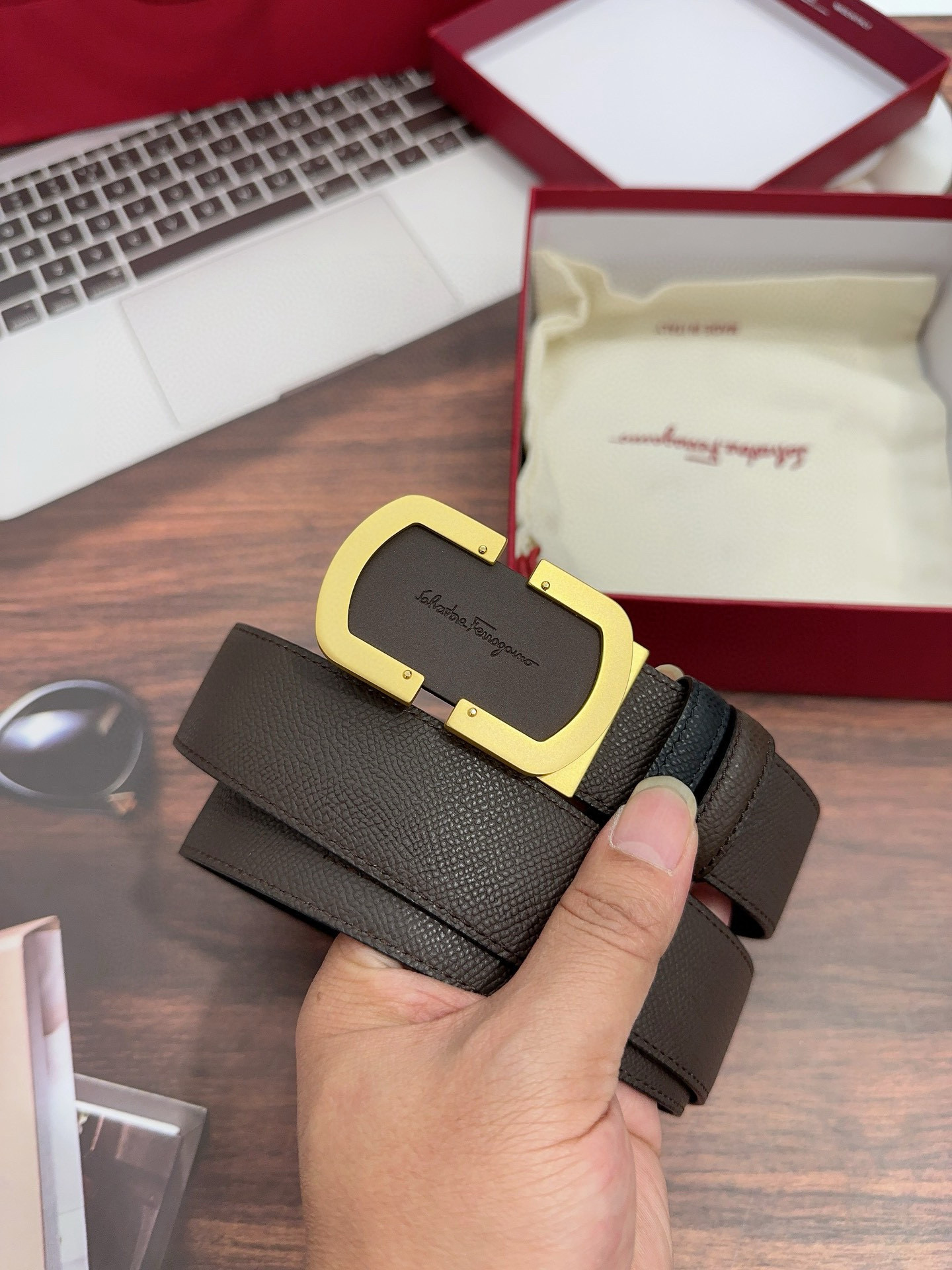 盒 送礼首选 超高端 菲拉格慕08双头腰带男士腰带 真的是卖 323537