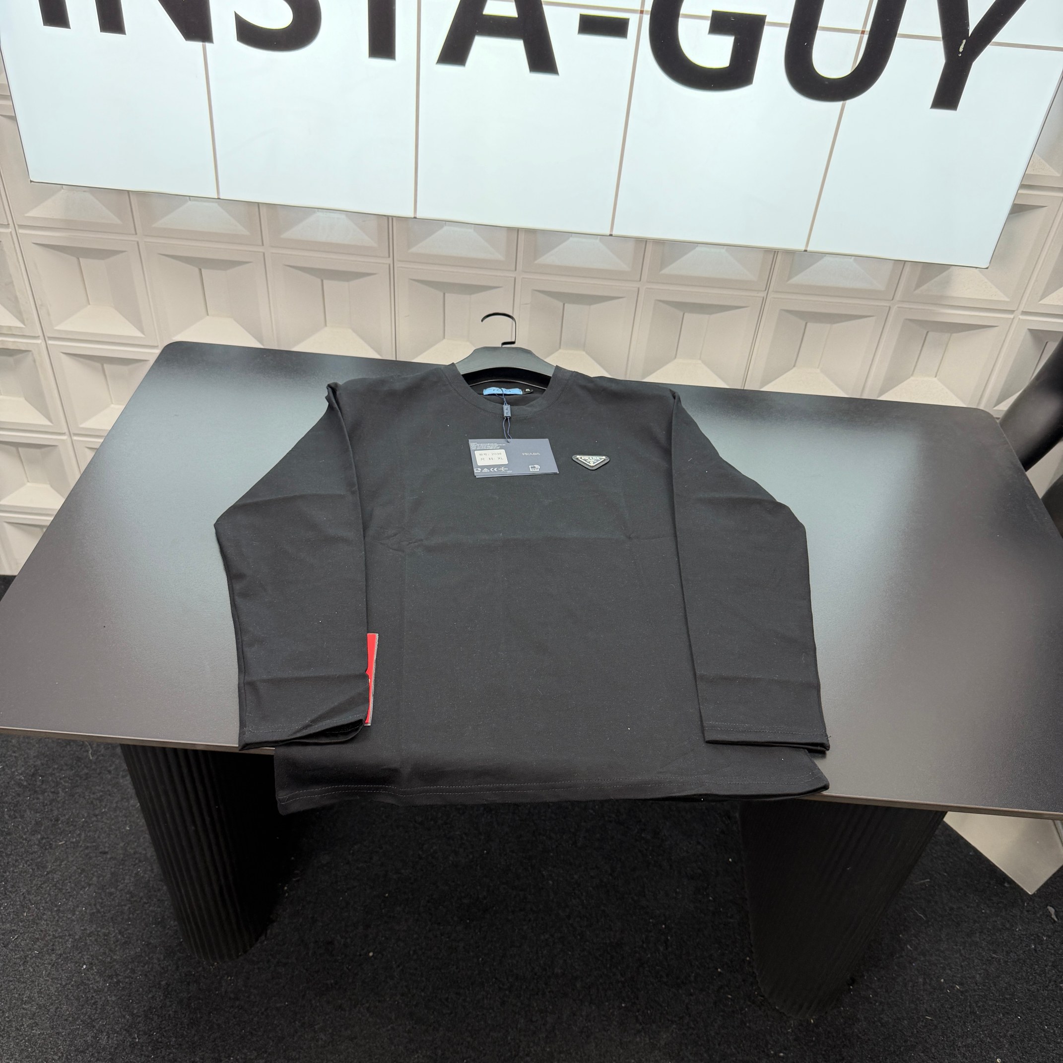 春夏新款上新爆炸输出Prada普拉达T恤长袖打底衫 胸前三角 488343