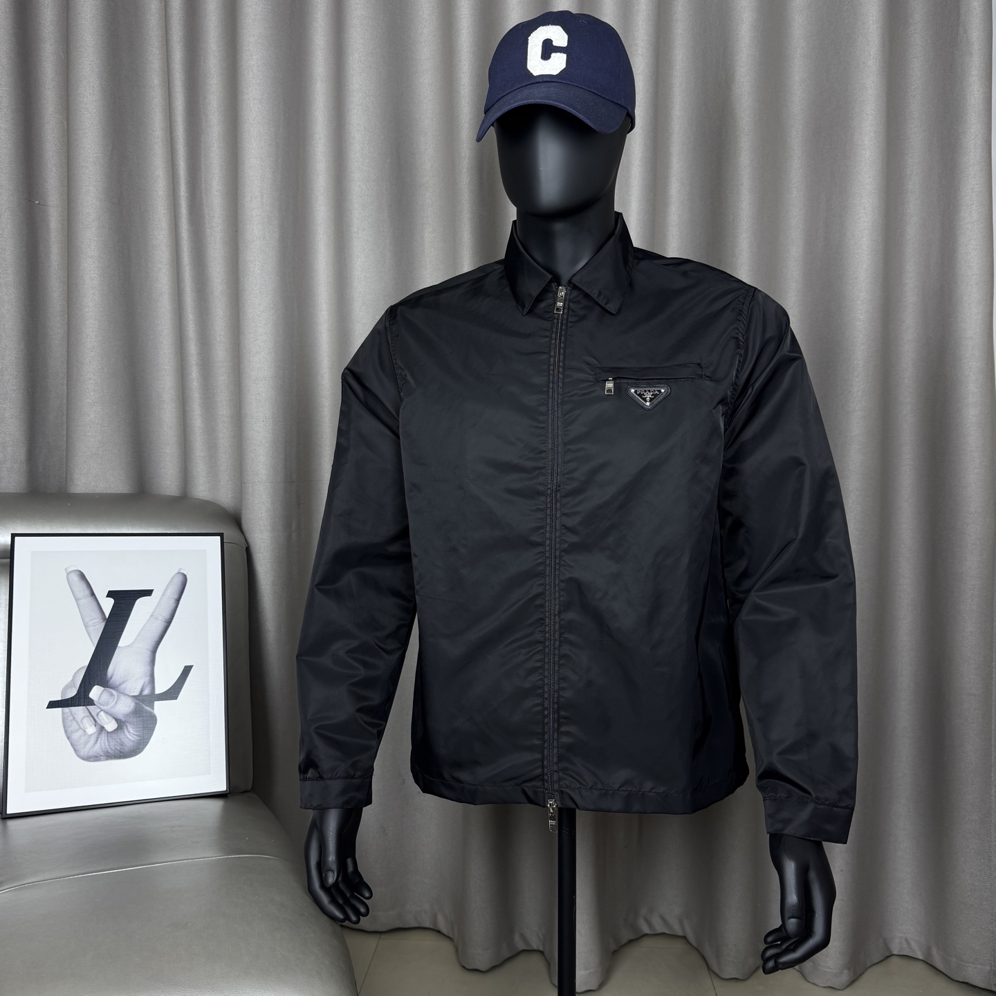 𝑷𝒂𝒓𝒅𝒂 普拉达经典款翻领金属三角标外套春秋 487182