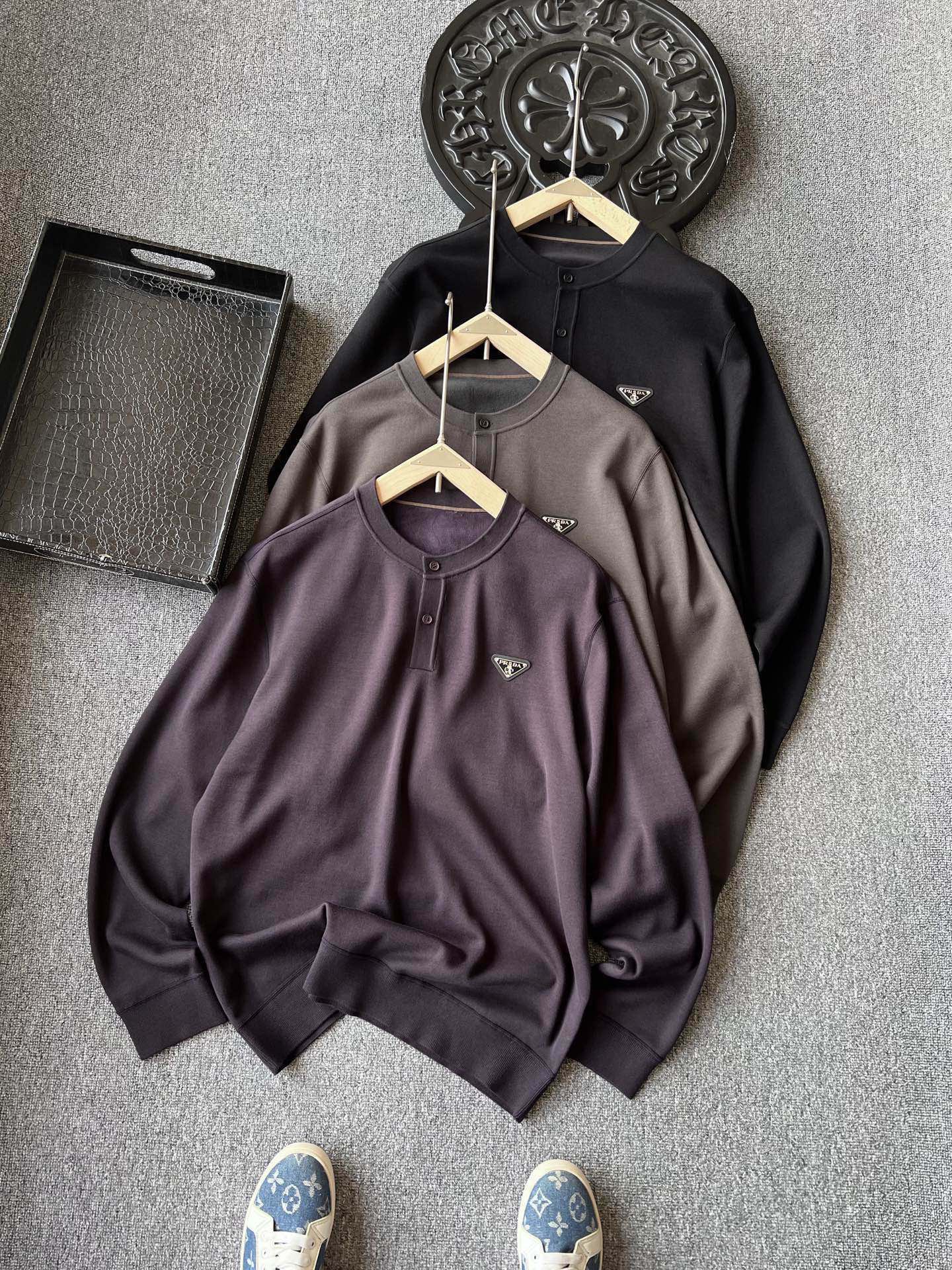 售后不停 供 Prada普拉达经典三角皮标加绒卫衣