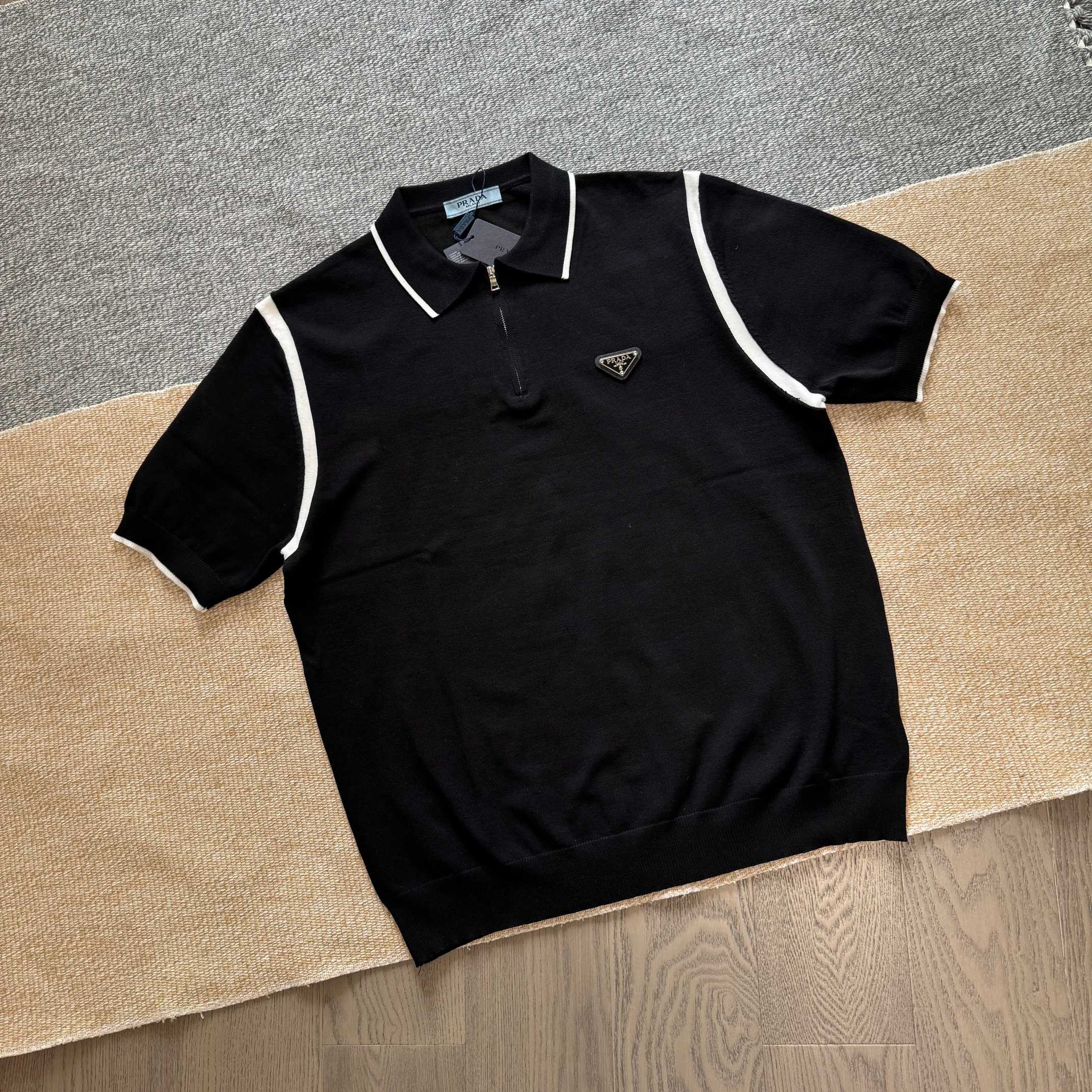 批发 PRADA普拉达经典三角皮标翻领针织毛衣短袖
