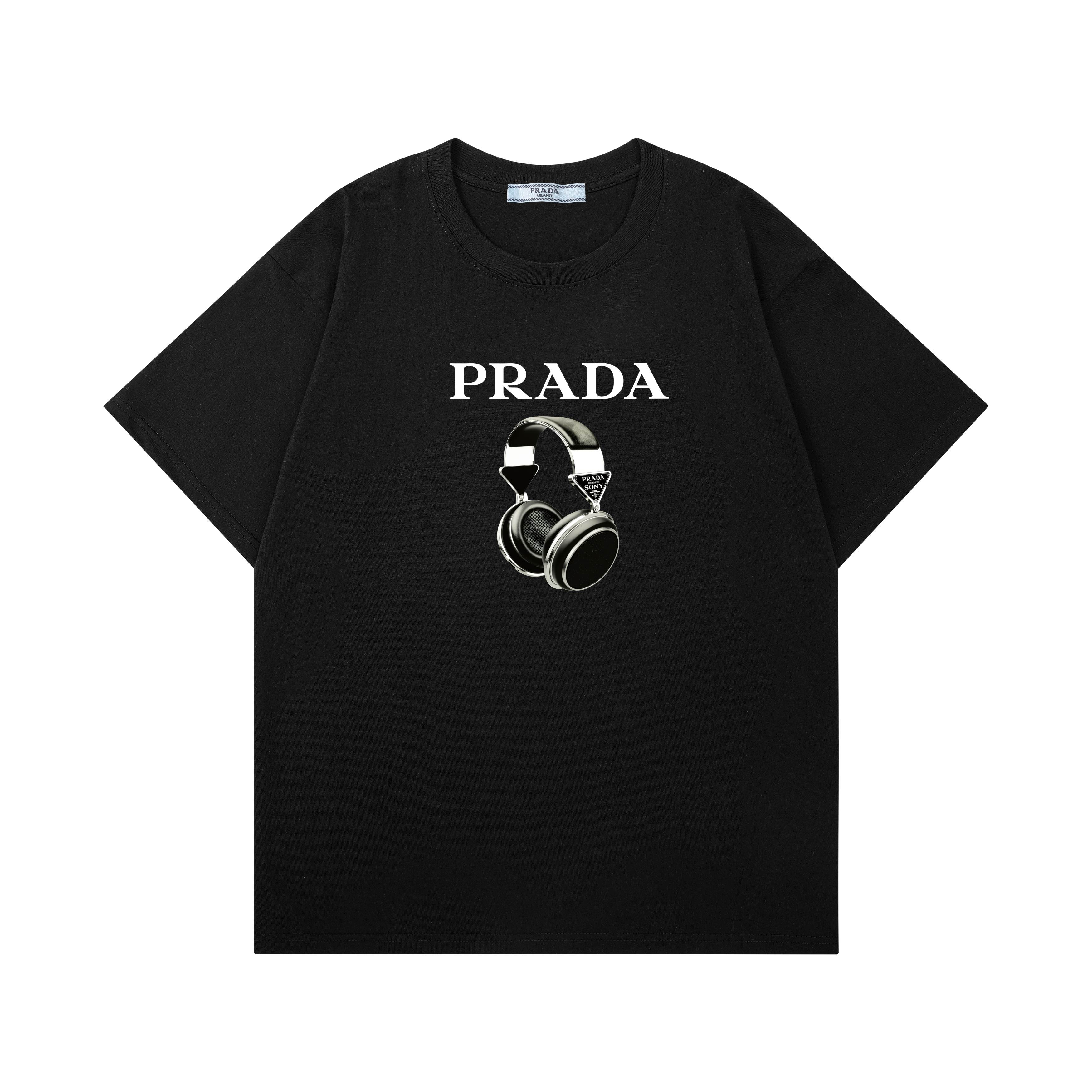 批发 Prada普拉达耳机印花棉质短袖T恤