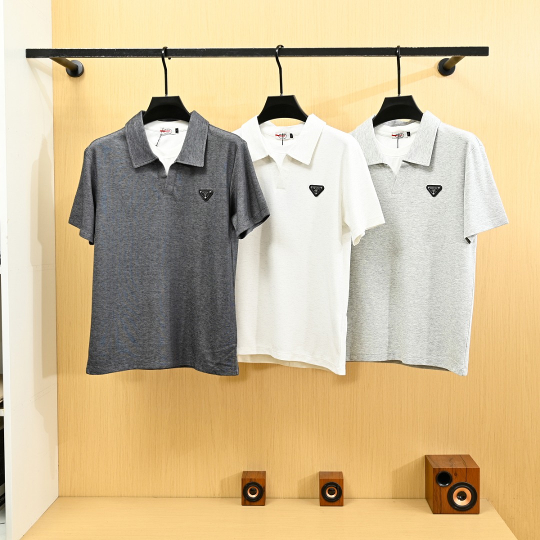 普拉达男士翻领无痕冰丝短袖POLO衫 576576