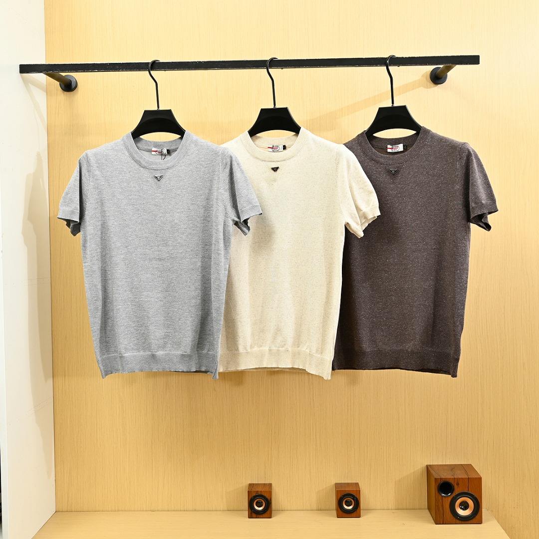 批发 PRADA普拉达经典三角皮标针织毛衣短袖