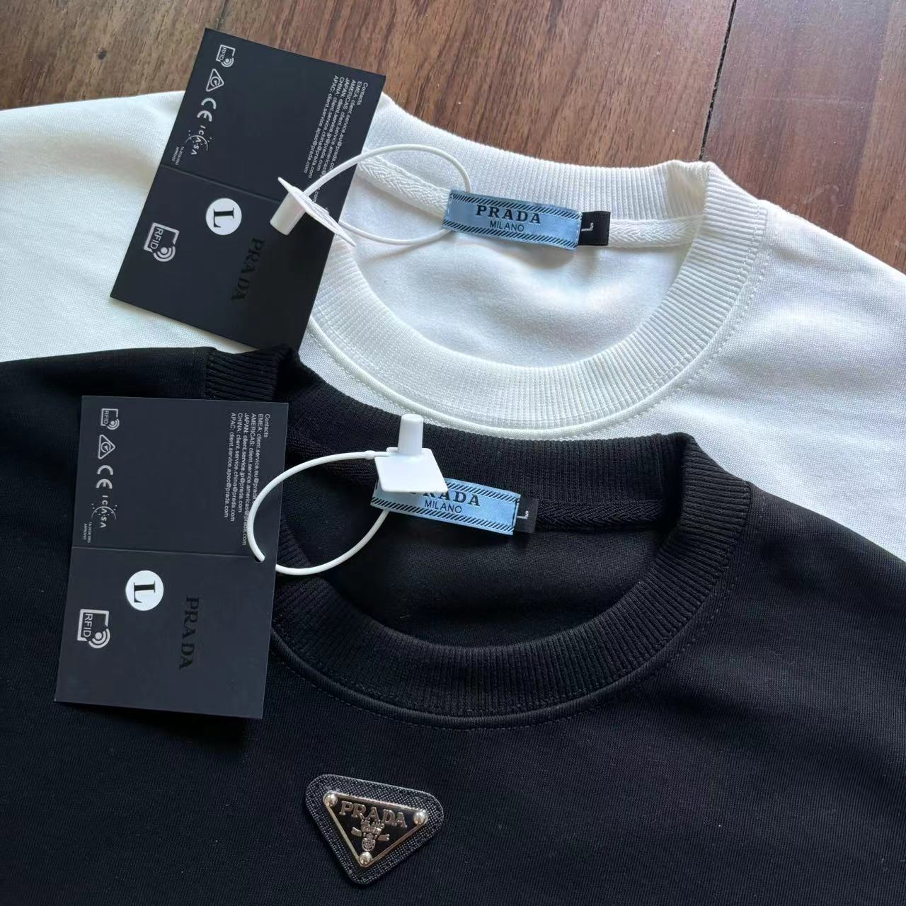 高品质 prada 普拉达 刺绣 加印花工艺 T恤圆领