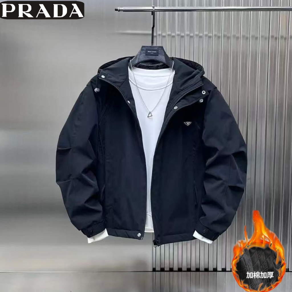 普拉达Prada冬季新款 男士高级感加棉加厚立领毛呢外套 男 428906
