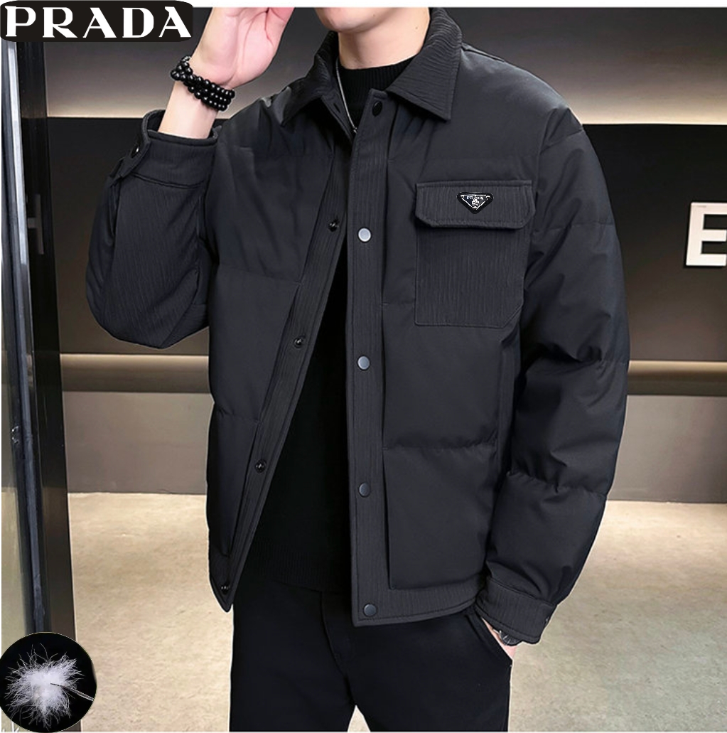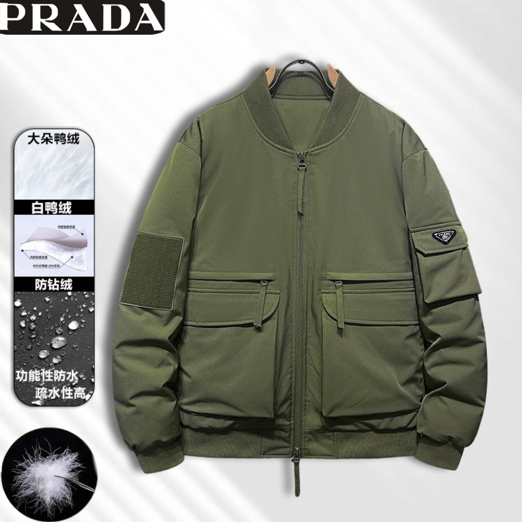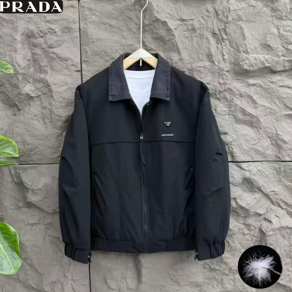 普拉达冬季新款 翻领麦穗羽绒服夹克 顶级品质