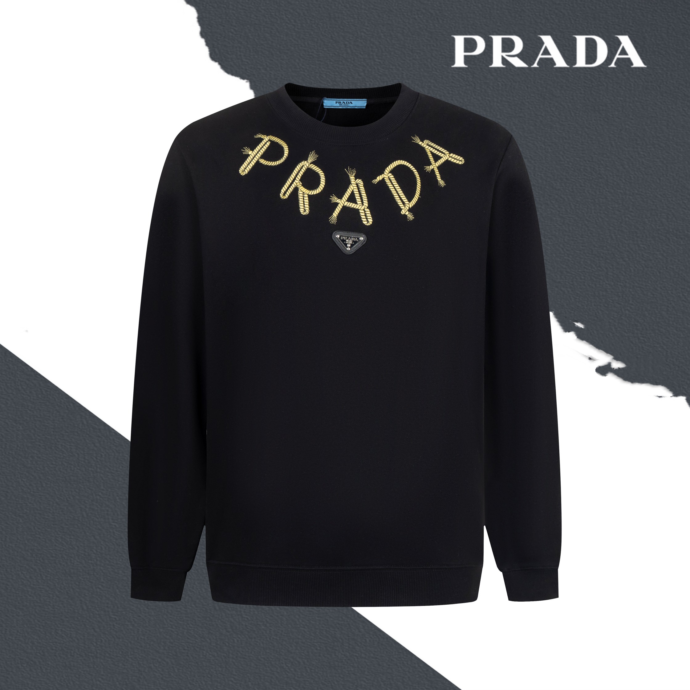 PRADA普拉达字母麻花小标刺绣圆领卫衣