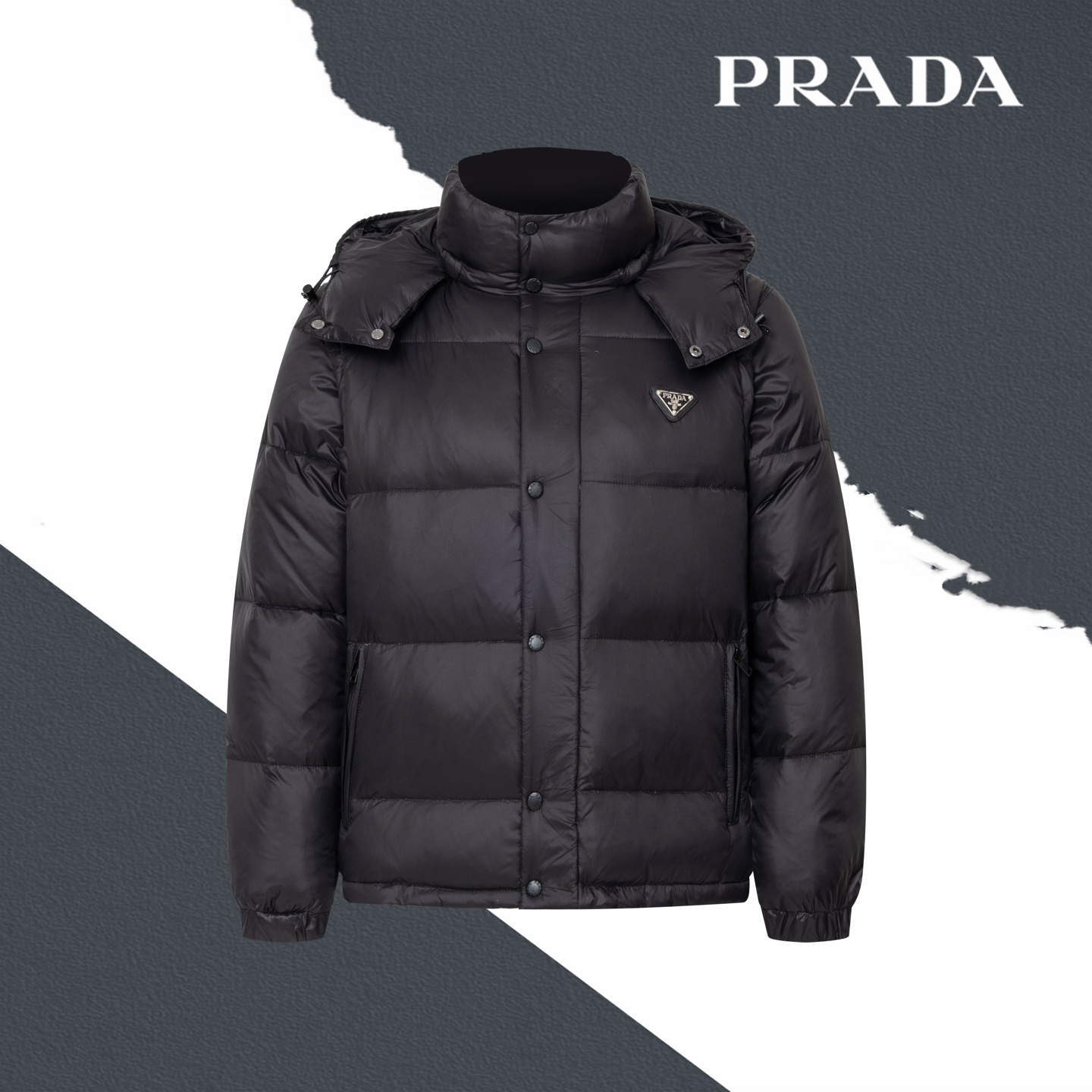 PRADA普拉达经典小标可拆卸拼接连帽羽绒 426462