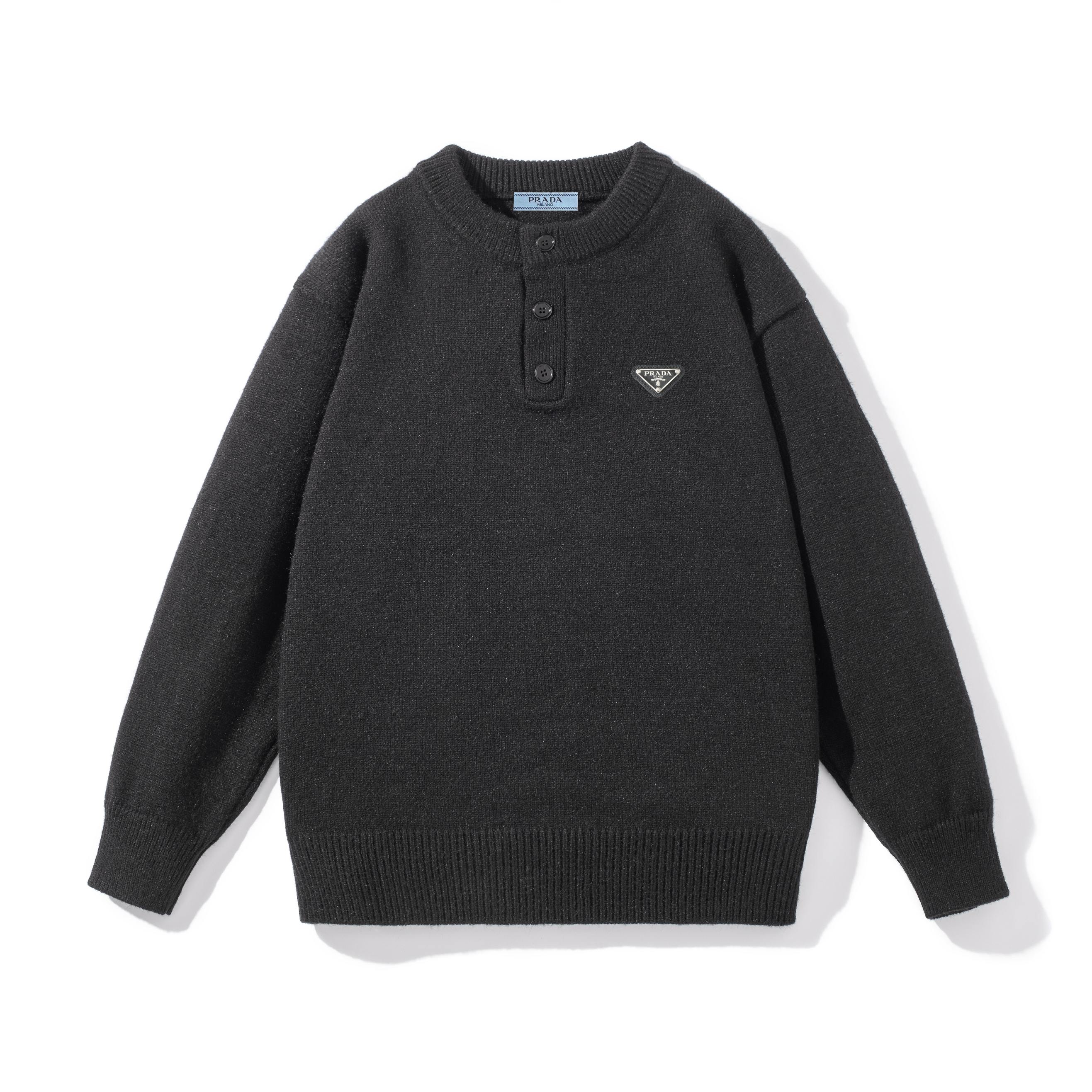 PRADA普拉达经典三角皮标纽扣针织毛衣