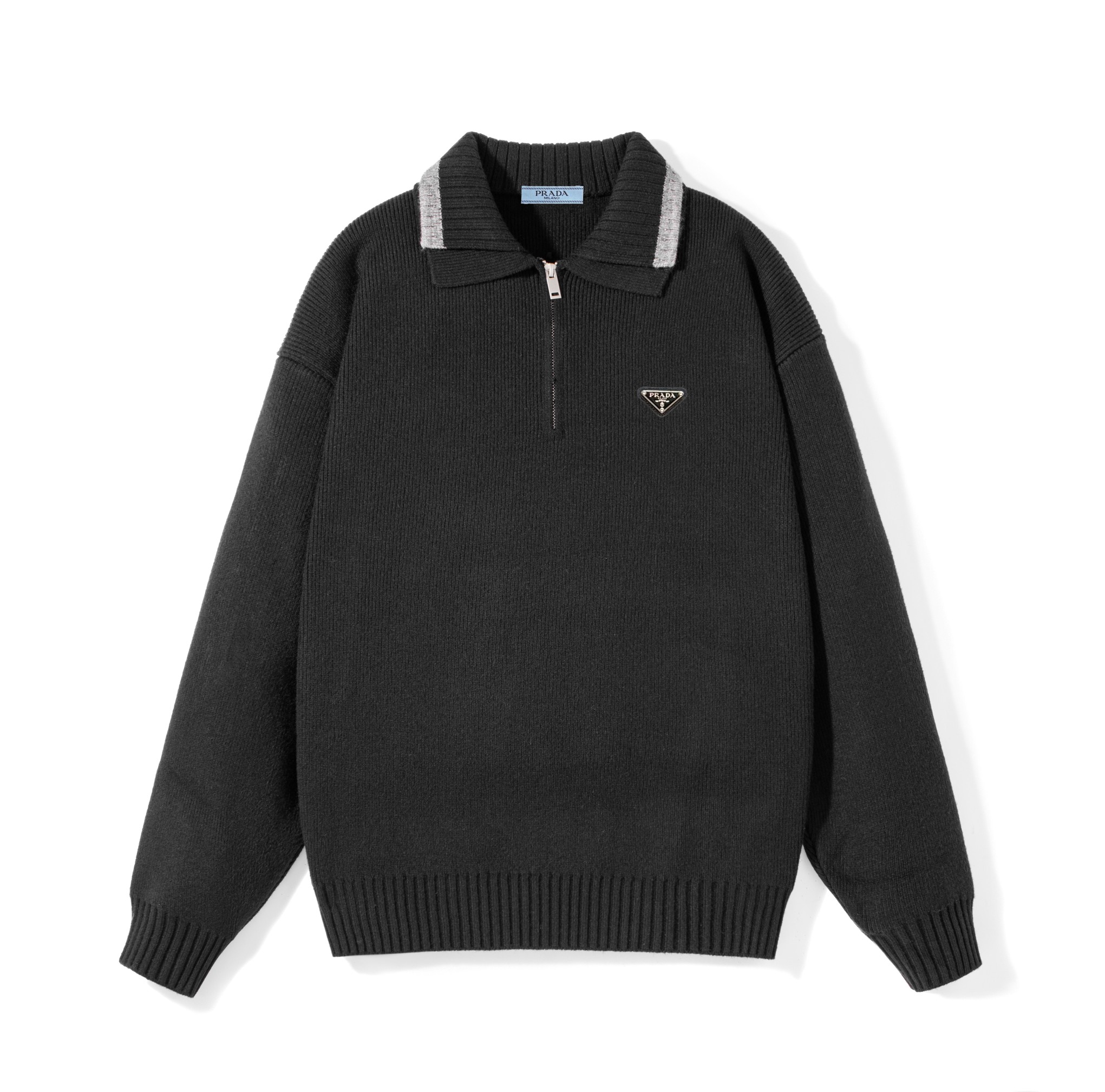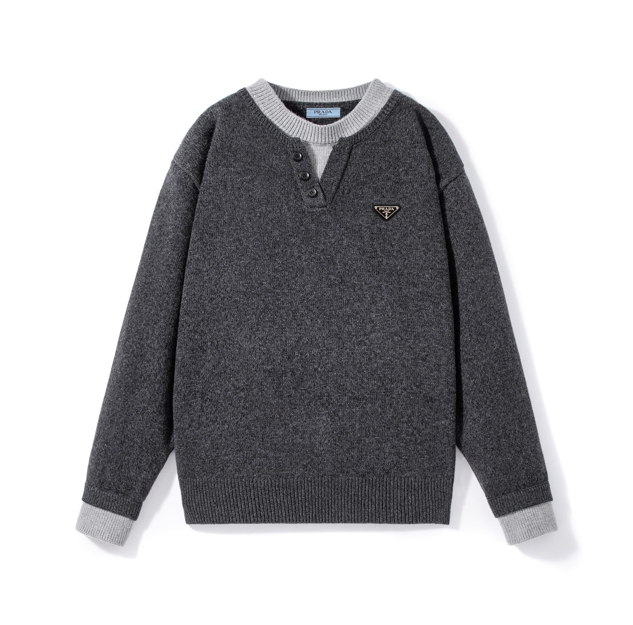 秋冬爆款热销款推荐Prada普拉达针织毛衣 黑灰撞色拼接色 418098