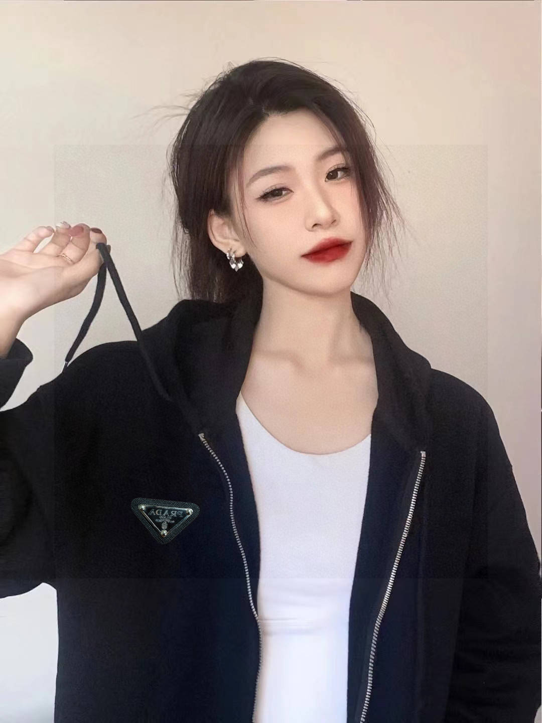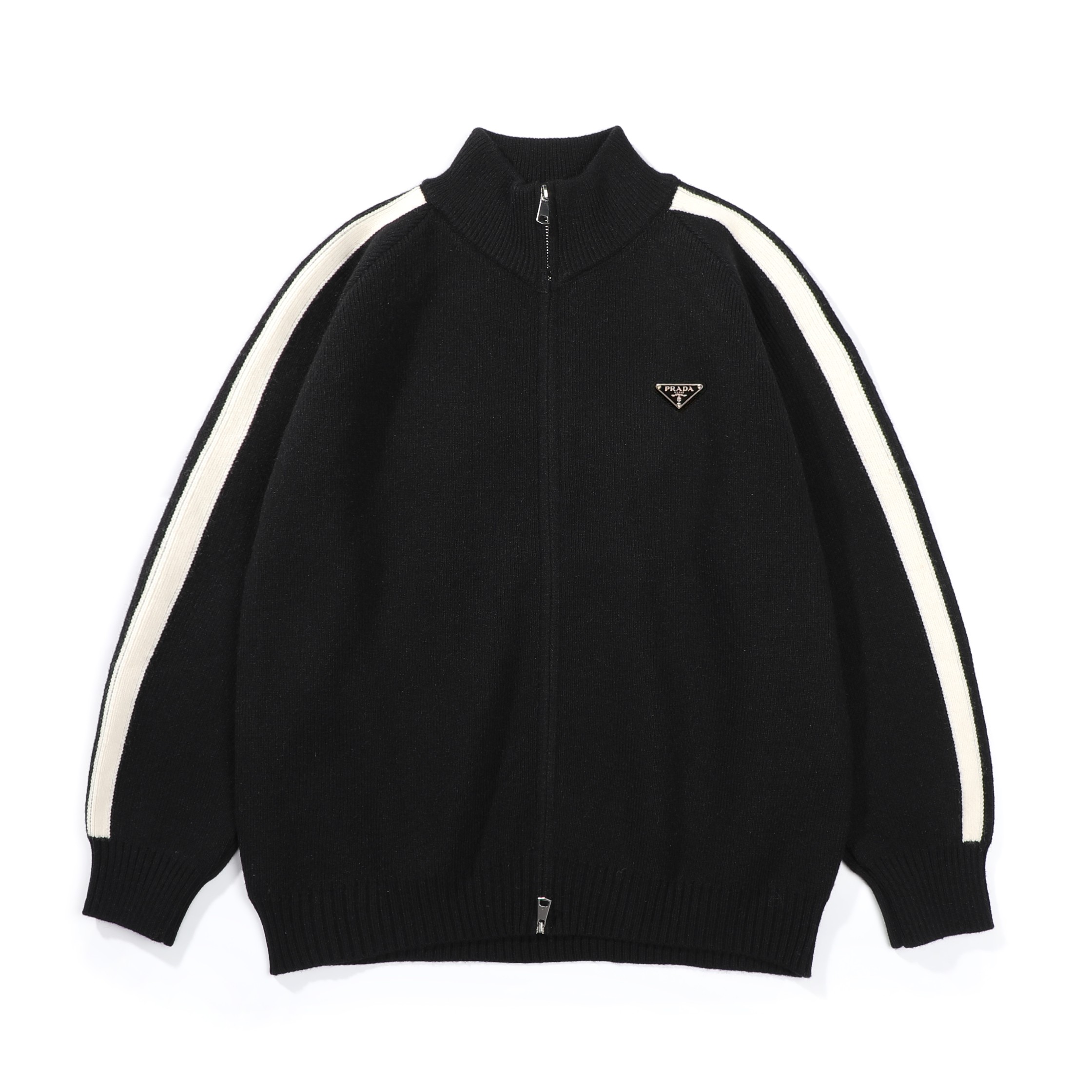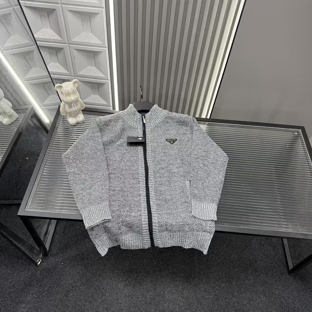 Prada普拉达经典三角皮标拉链针织毛衣开衫外套