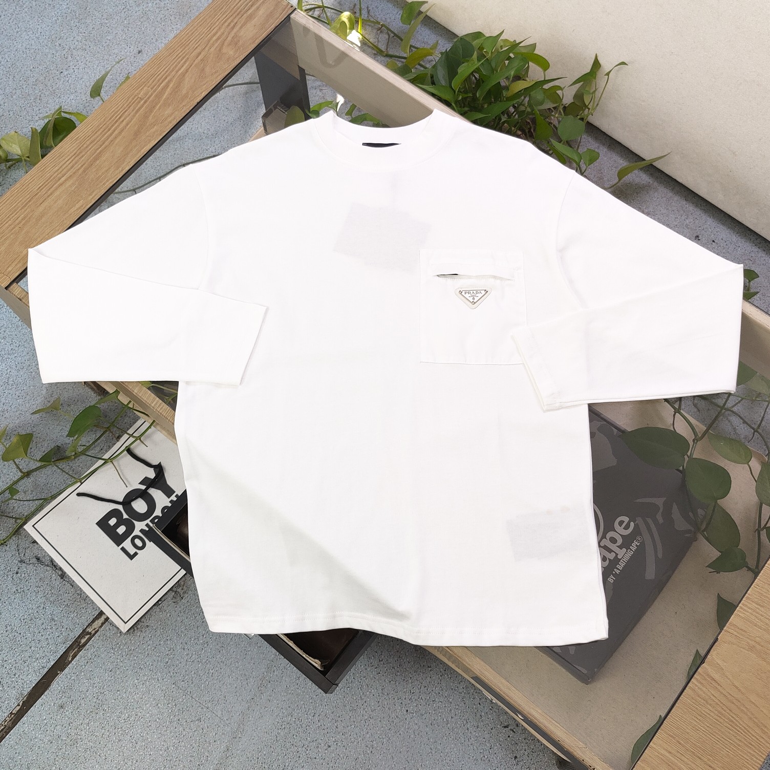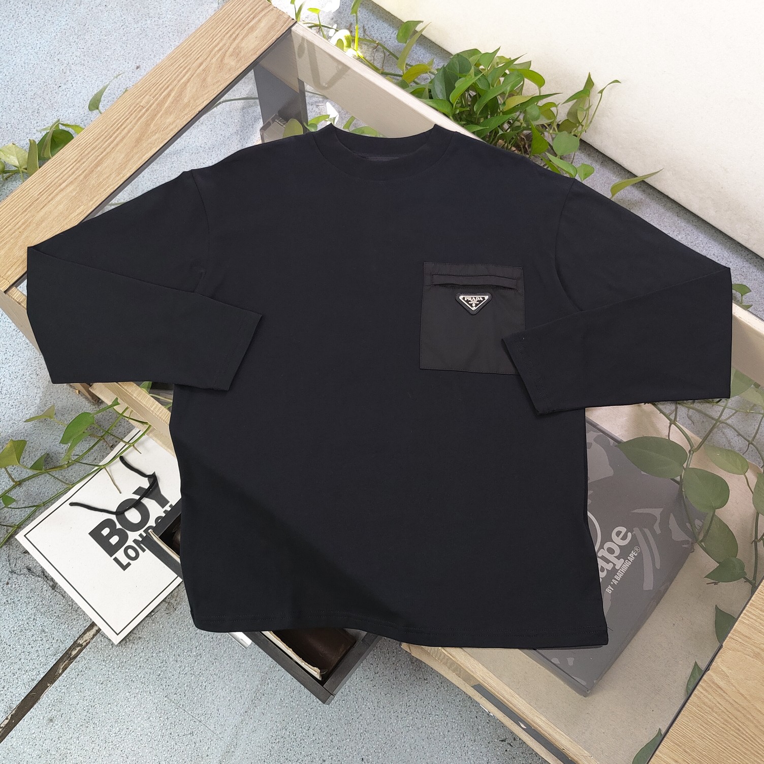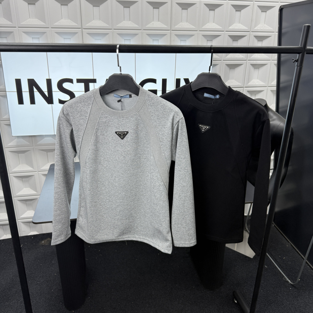 Prada普拉达美式设计感拼接圆领卫衣